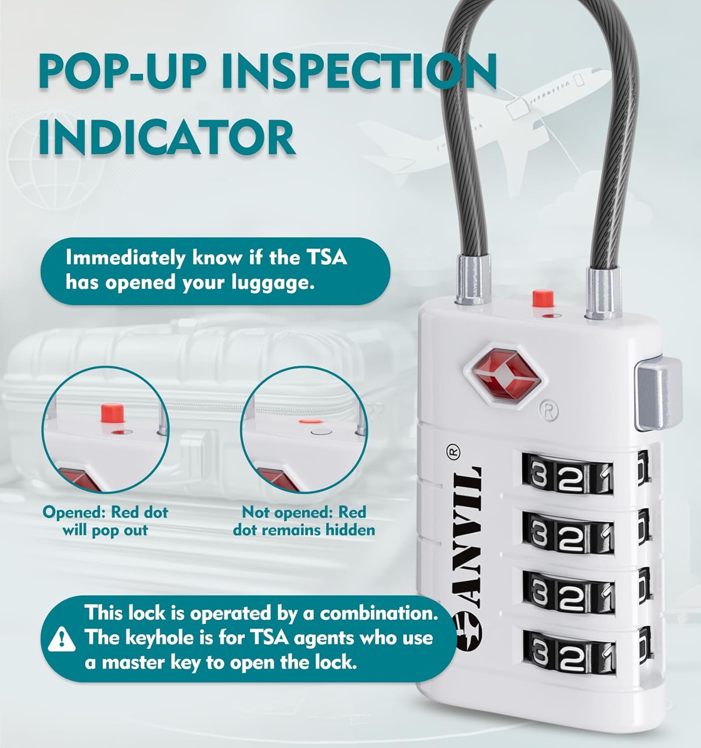 ANVIL 4 Digit Luggage Locks, TSA Locks for Luggage, Advanced TSA008 core, Alert Indicator for Your Travel Lock, Suitcase Lock.(4, White)