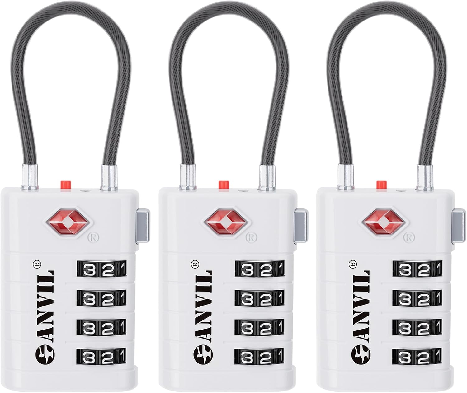 ANVIL 4 Digit Luggage Locks, TSA Locks for Luggage, Advanced TSA008 core, Alert Indicator for Your Travel Lock, Suitcase Lock. (3, White)