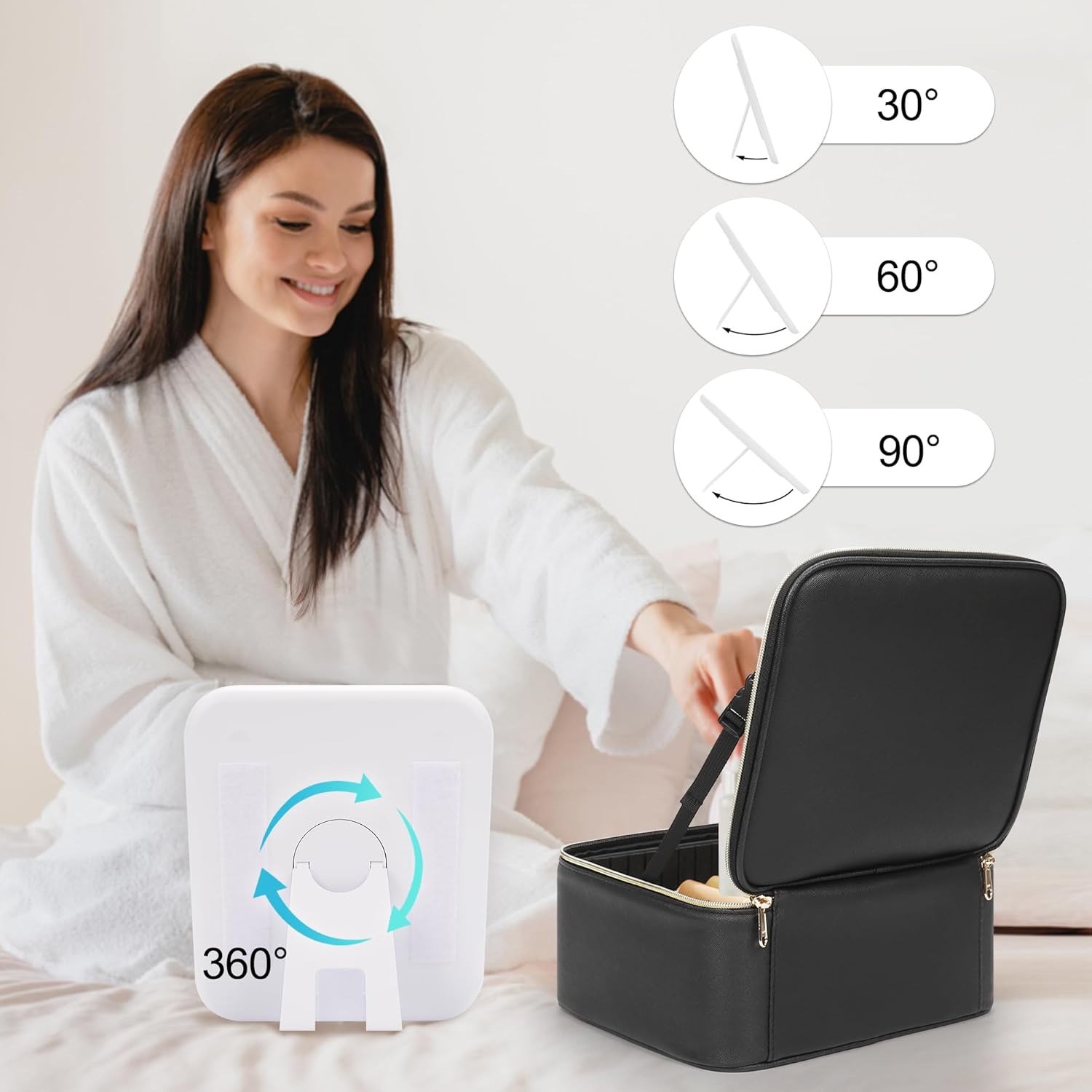 - 【Upgraded Ideal Gift】Travel Makeup Bag with LED Mirror is suitable for people who need short trips, also suitable for daily use, professional makeup artist work use, one of the perfect gifts for beauty lovers and fashionistas