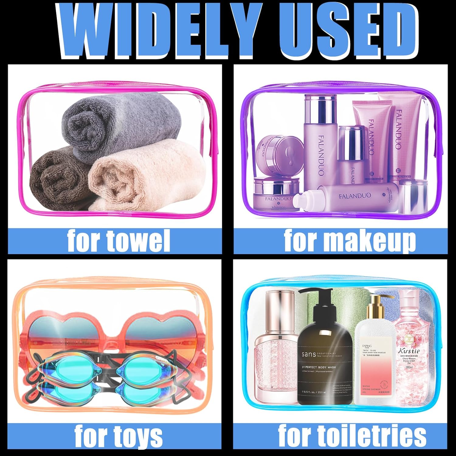 - 【STURDY CLEAR TRAVEL BAGS】 Made of quality PVC material, this zippered clear toiletry carry pouch is strong in quality, not easy to tear or break, able to support long term use; Waterproof PVC material makes it easier to clean, and scratch-resistant, and any stains on it can be easily wiped off with a towel.