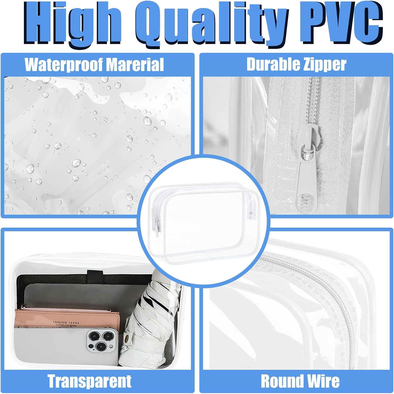 - 【STURDY CLEAR TRAVEL BAGS】 Made of quality PVC material, this zippered clear makeup carry pouch is strong in quality, not easy to tear or break, able to support long term use; Waterproof PVC material makes it easier to clean, and scratch-resistant, and any stains on it can be easily wiped off with a towel.