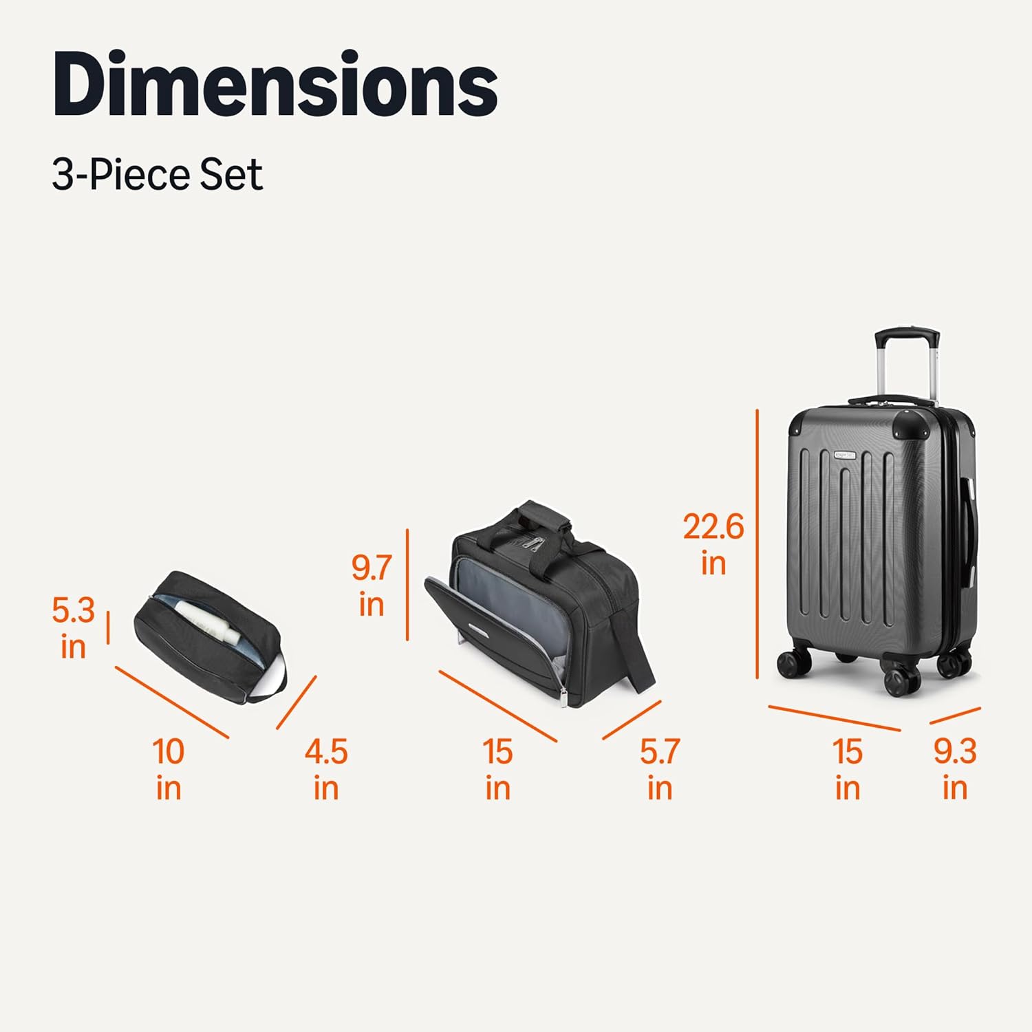 Amazon Basics 3-Piece Luggage Set, Including One Carry-On Luggage (22" Expandable Hardside Suitcase With 8 Spinner Wheels), One 15-inch Tote Bag, and One 10-inch Compact Travel Bag, Black