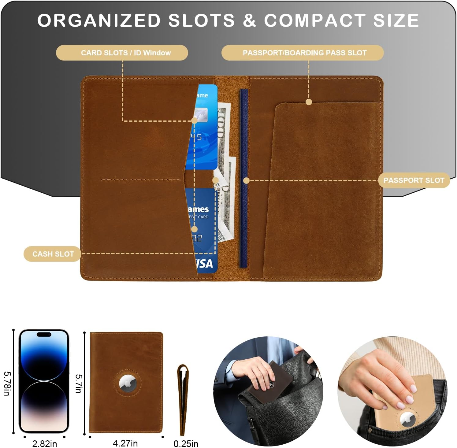 - ADD EXTRA CONVENIENCE: NOTE - "Classic Style" doesn't come with an Airtag slot. "For Airtag Style" comes with a built-in Airtag slot (AirTag not included), making it easy for you to find your passport anywhere. Carrying this airtag passport holder, you won't need to purchase an additional Airtag protective case, saving you money and space in your bag