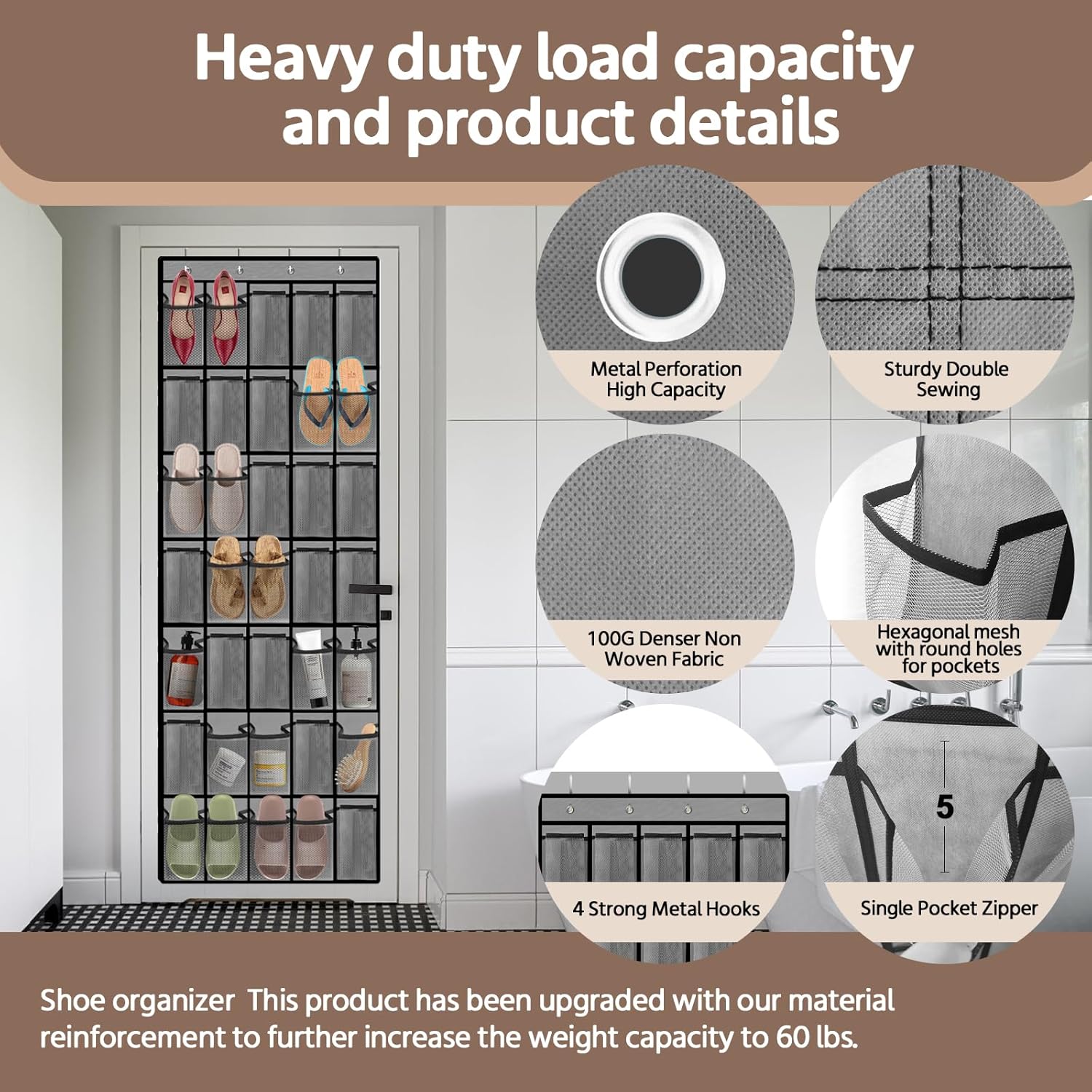 - 🍁✔️【DURABLE AND PREMIUM QUALITY MATERIALS】The door hanging shoe organizer is made of high quality thickened and breathable non-woven fabric with 35 large pockets, which can hold tennis shoes, men's sneakers, boots, hiking shoes, high heels, children's shoes and sandals, etc., and it also comes with 4 strong and durable hooks, which can hold up to 60 lbs. when hanging on the back of the door. The hanging bag folds up and can even be taken with you on the go, so you can easily organize your belongings when you travel.