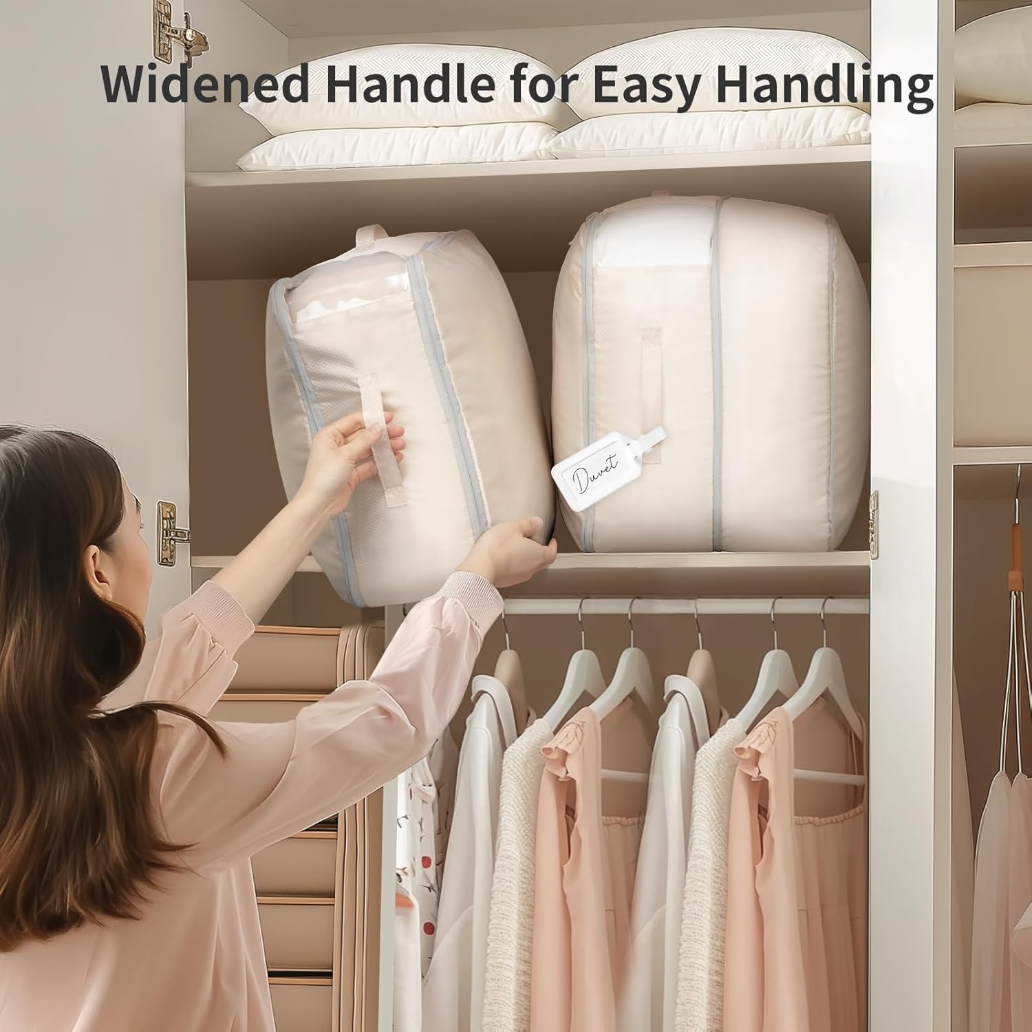 DIMJ 66L Comforter Storage Bag - 3 Pack Space-Saving Self-Compression Bags for Blankets, Duvets, Pillows, Bedding, and Down Jackets with Clear Window and Handle