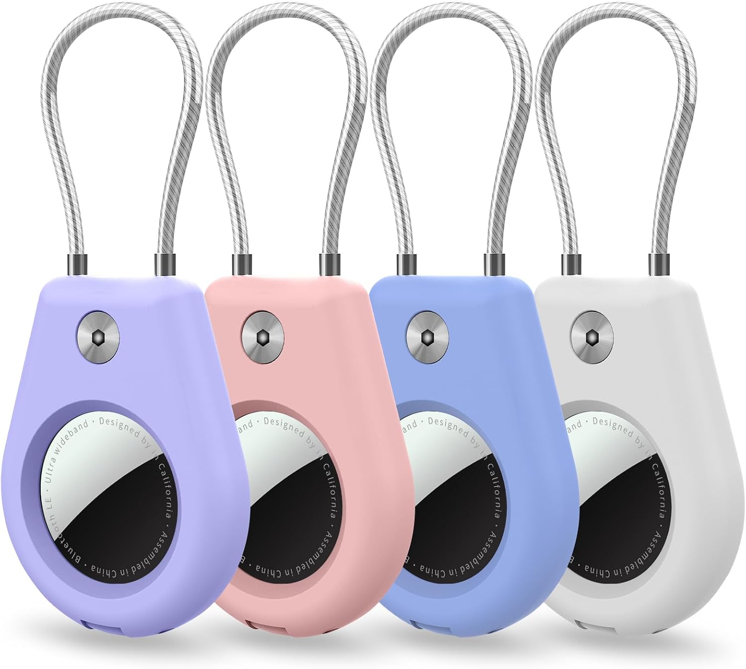 4 Pack Airtag Holder Compatible with Apple AirTag, Secure Holder with Wire Cable for Men Women's Keyrings & Keychains, Air Tag Case Keychain for Keys, Luggage, Bags, 4 Colors