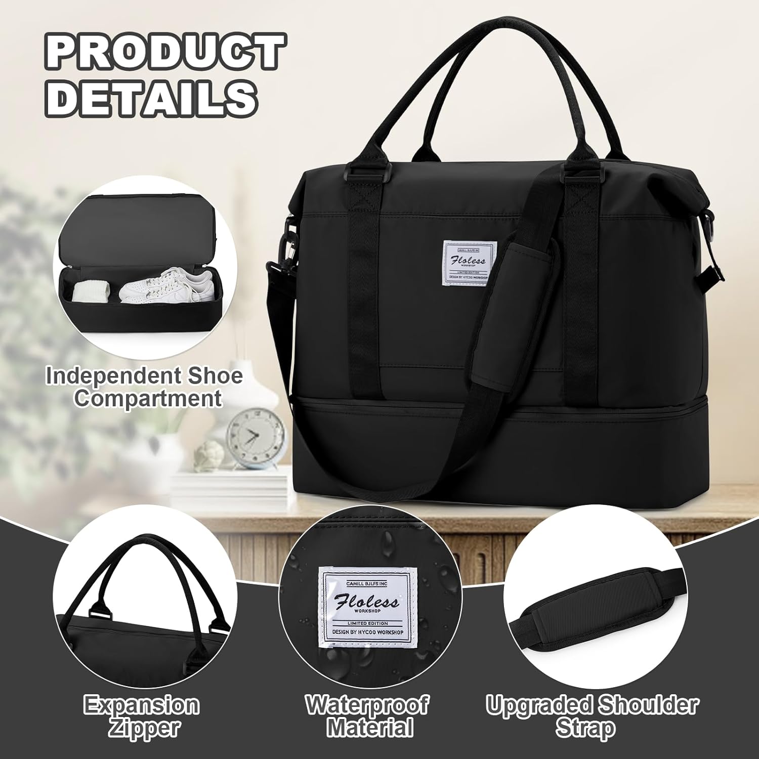 Travel Duffel Bag, Sports Tote Gym Bag, Shoulder Weekender Overnight Bag for Women