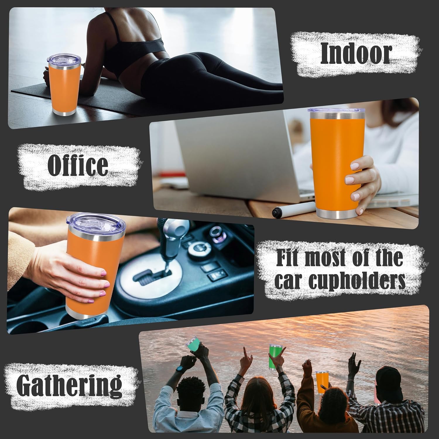 20 oz Tumbler Coffee Tavel Tumblers Bulk with Lid Stainless Steel Double Wall Vacuum Insulated Mug Powder Coated Cups fit Car Cupholder for Hot and Cold - Orange, 12Pack
