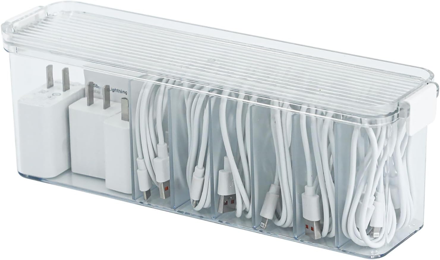 Yesesion Plastic Cable Organizer Box with 7 Compartments, Clear Cords Storage Case for Desk Drawer Accessories, Phone Charger, Art Crafts, Stationery Holder for Marker Pen, Pencils, Crayons