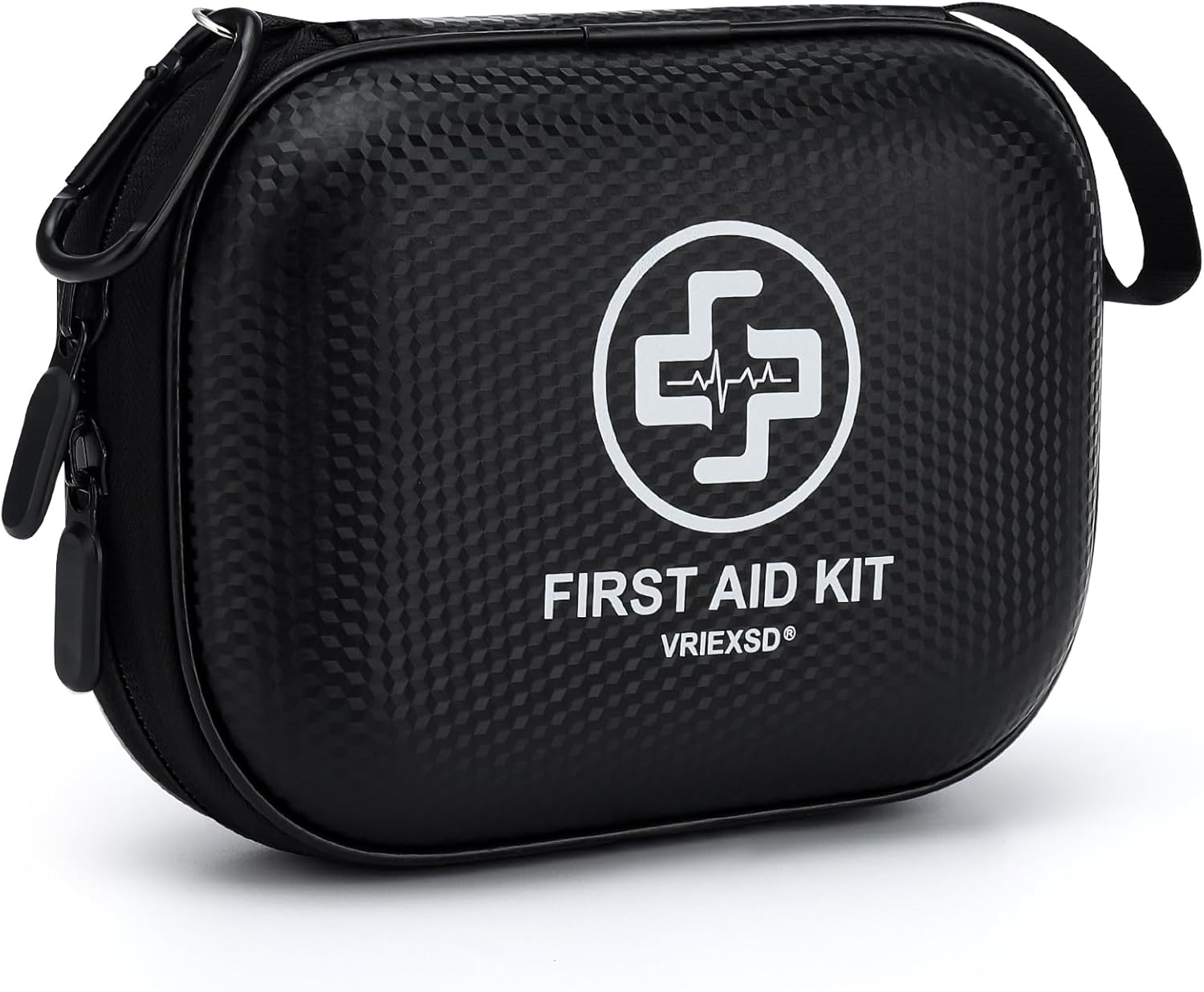 Mini First Aid Kit - 150 Piece Small Waterproof Hard Shell Medical Kit for Home, Car, Travel, Camping, Truck, Hiking, Sports, Office, Vehicle & Outdoor Emergencies (Black)