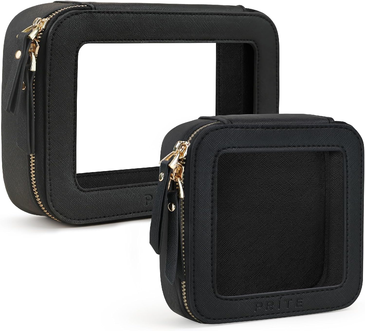 Prite Clear Makeup Bag Set for Women Portable Clear Makeup Bag Cute Waterproof Travel Cosmetic Bag with Gold Zipper for Car Essentials(Black)