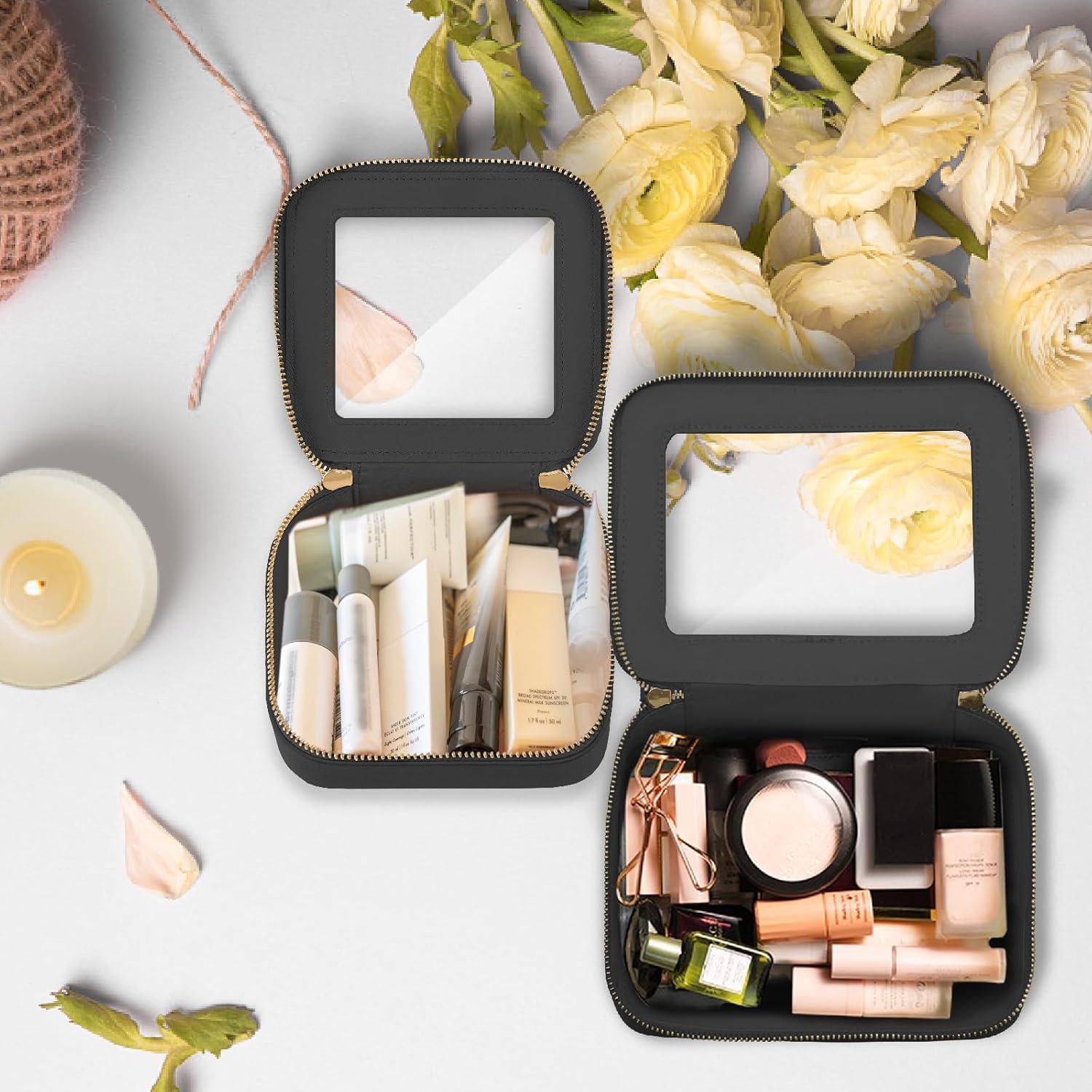 - 【ROOMY & STYLISH】 Measuring 8.3'' x 6.2'' x 2.1''and 5'' x 5'' x 2.1'', this makeup travel organizer embodies luxury and style. Its minimalist boxy design in a chic color exudes elegance; Crafted from exquisite Vegan leather and adorned with polished hardware