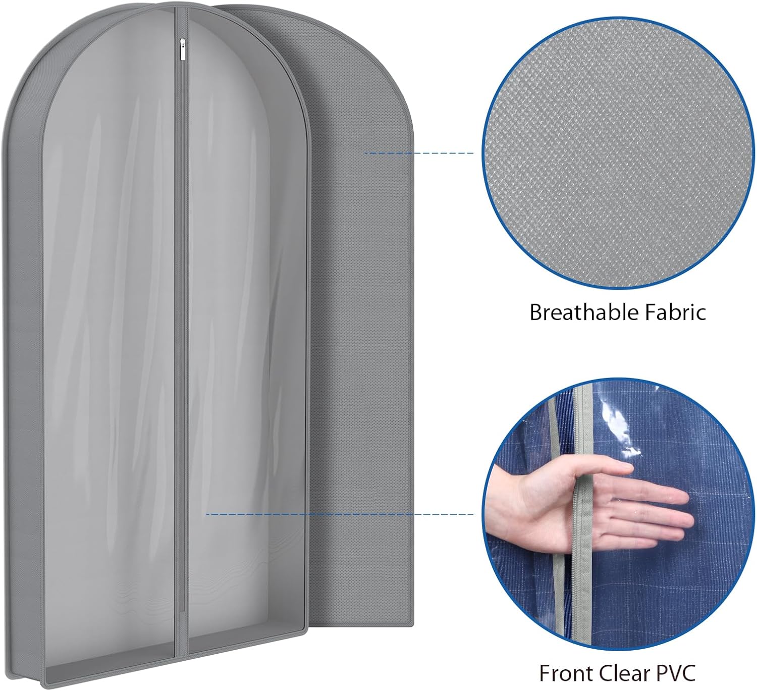 - 【Smooth Zipper】Experience the smooth zipper functionality of our hanging garment bags for closet storage. The large grip on the front zipper ensures easy pulling and increased durability. Metal stoppers on both ends prevent zipper slip-offs, guaranteeing a longer service life.