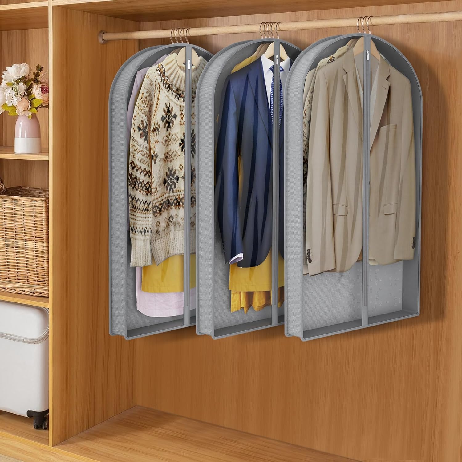 - 【Satisfied Service】 The specially designed hanging hole fits snugly around hangers, providing better protection against dust of your garments. We are committed to ensuring that you are satisfied. If you have any problems when using the coat bags for closet storage, please feel free to contact us.