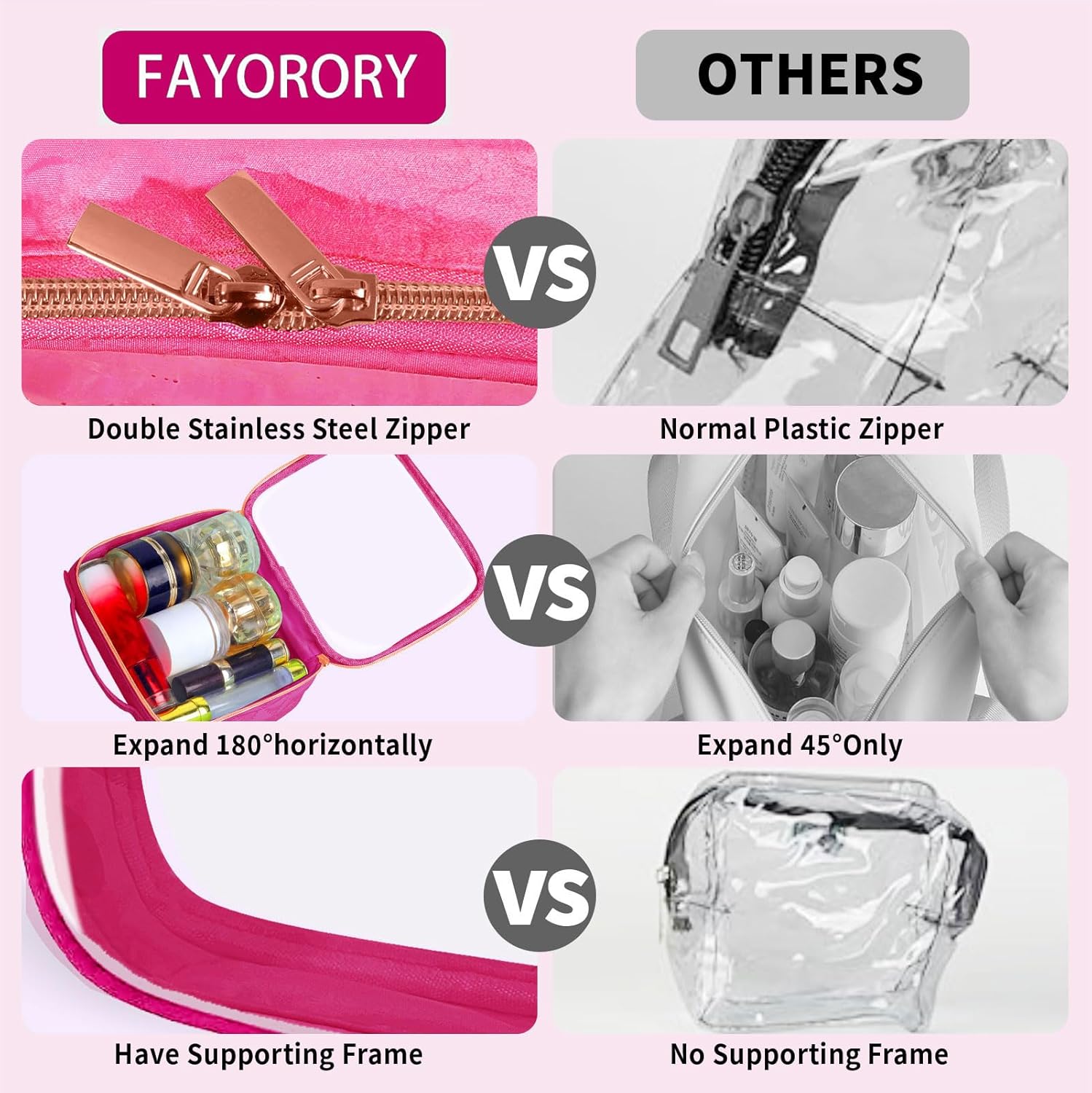 - 【Premium Materials】: FORXIFFA travel makeup bag is constructed from double-layered 60 Silk transparent PVC plastic and premium water-resistant fabric,ensuring the makeup travel bag is waterproof and easy to clean.Each bag's seams are reinforced,and the water-resistant fabric provides excellent toughness,preventing the clear travel bags for toiletries from deforming even under pressure.What a best travel essentials!