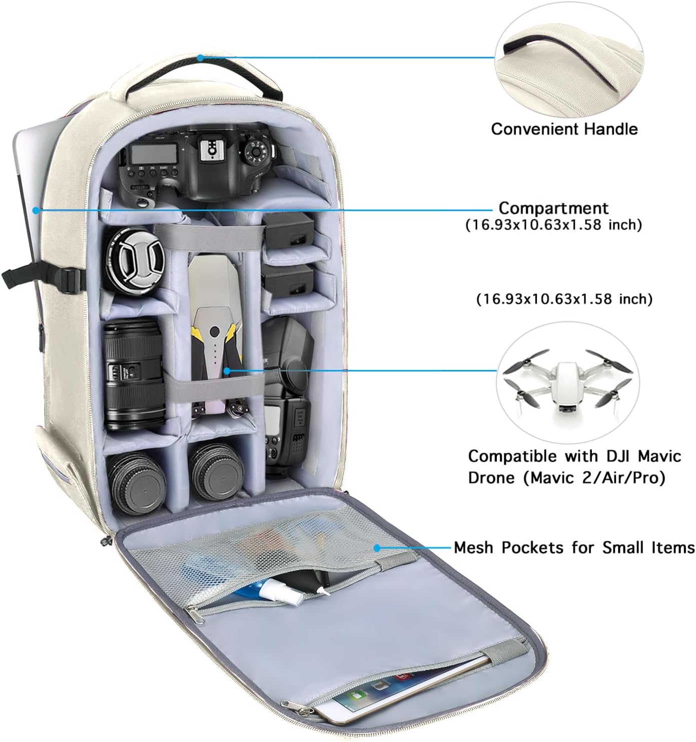 - This multifunctional camera bag is professionally designed for DSLR / SLR / Mirrorless cameras of different brands. Compatible with Nikon D5600, D5300, D3500, D3400, D3300, D3200; compatible with Canon EOS Rebel T6, T6i, SL2 and other standard-size DSLRs. Also designed to be compatible with DJI Mavic Drone(Mavic 2/Air/Pro).