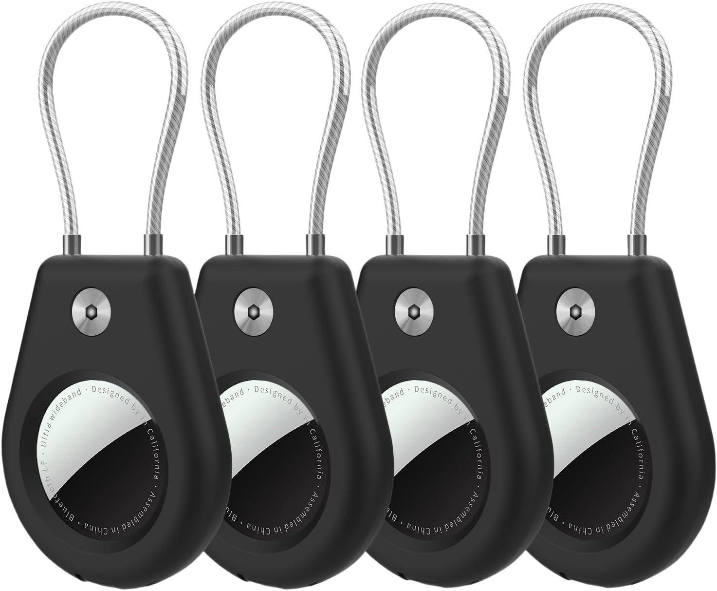 4 Pack Protect Case Compatible with Apple AirTag, Secure GPS Tracker Holder with Wire Cable Shockproof & Anti-Theif Suitable for Keychain, Keys, Luggage, Bags and Kids