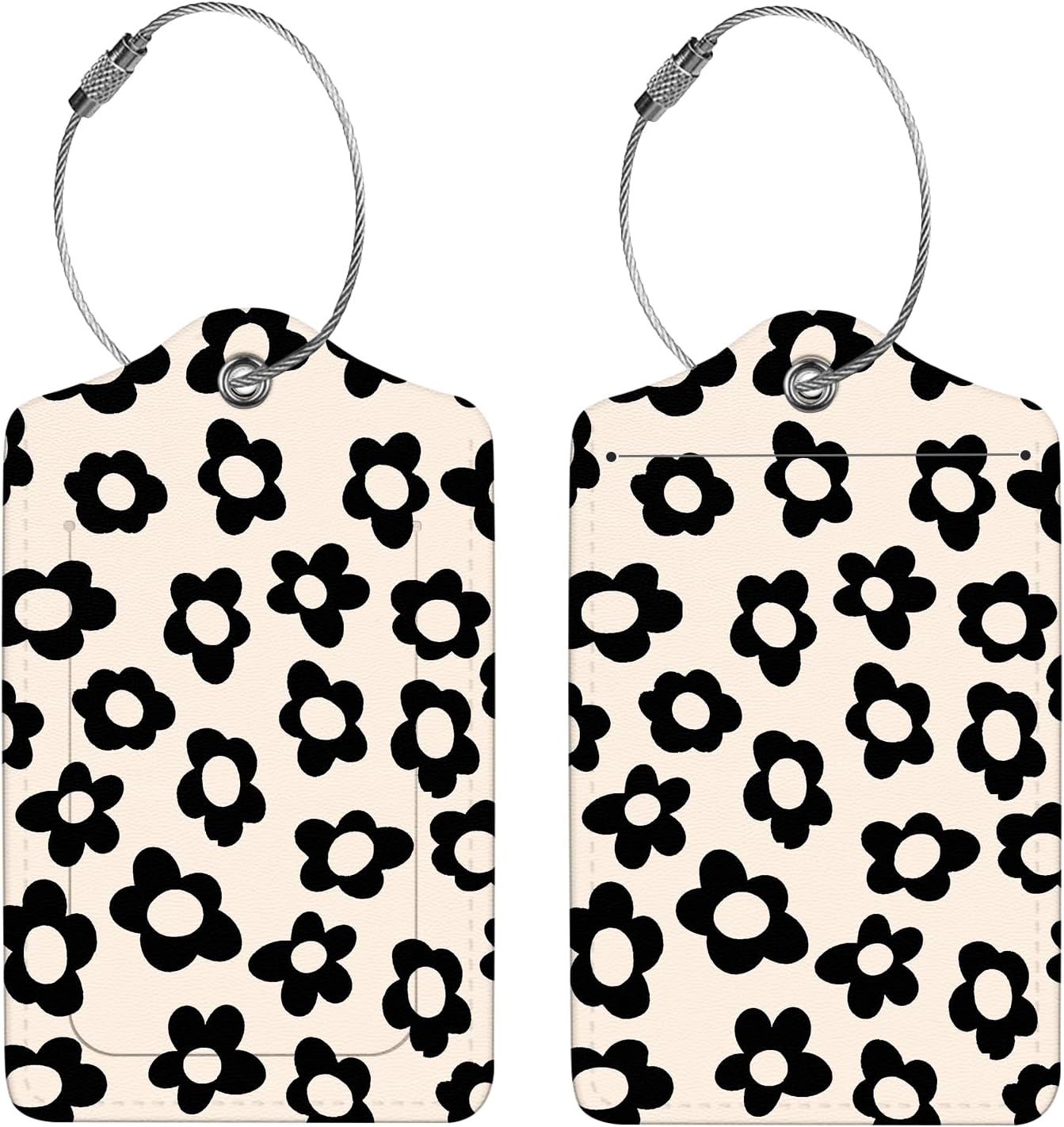 2 Pcs Luggage Tags for Suitcase, Cute Unique PU Leather Travel Bag Tag with Privacy Cover ID Label Address Card and Durable Metal Ring Suitable for Men Women Children Backpack,Black Flowers