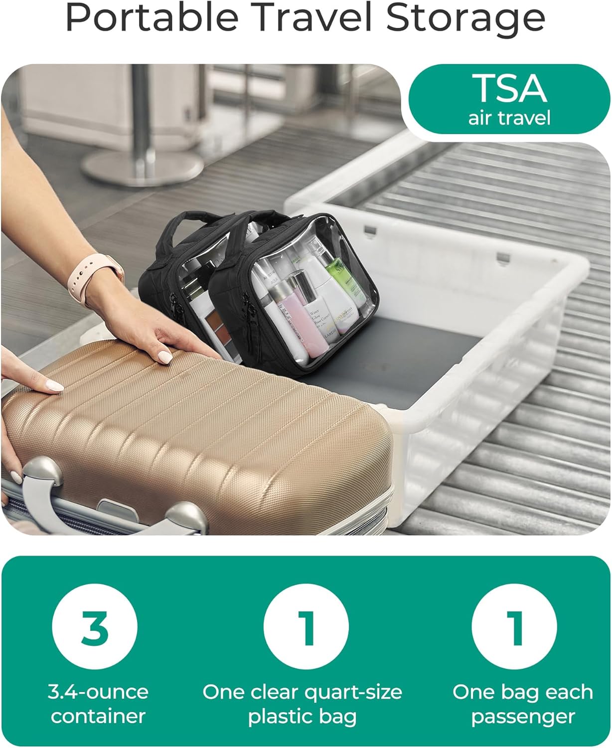 - TSA APPROVED - The 8.26" x 5.9" x 2.75" clear makeup bag complies with TSA's 3-1-1 liquid rule and can hold four 3.4 oz bottles. The all-around transparent design helps to quickly and easily see the contents of your bag, allowing you to breeze through airport security.