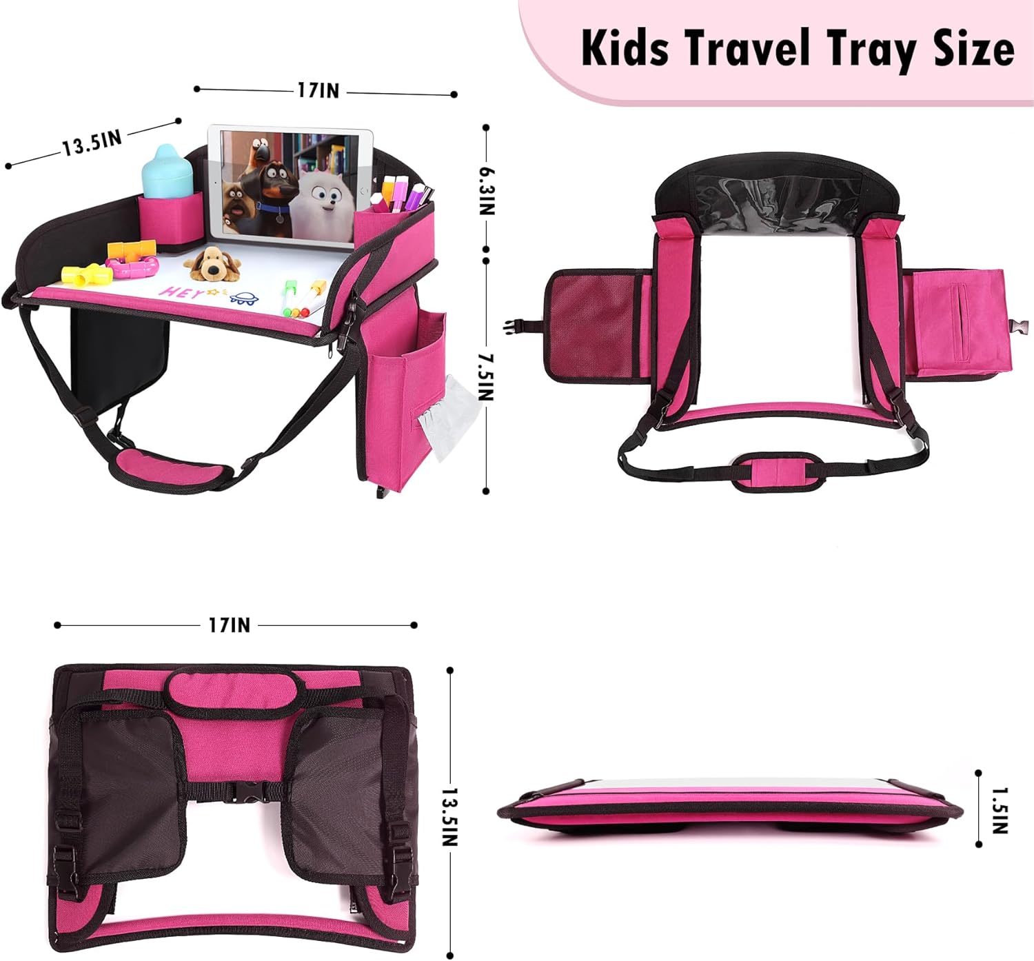 Kids Travel Tray for Airplane - Toddler Car Seat Table Tray, Road Trip Essentials for Boys & Girls, Carseat Lap Desk for Kids Road Trip Activities (Pink-2PCS)