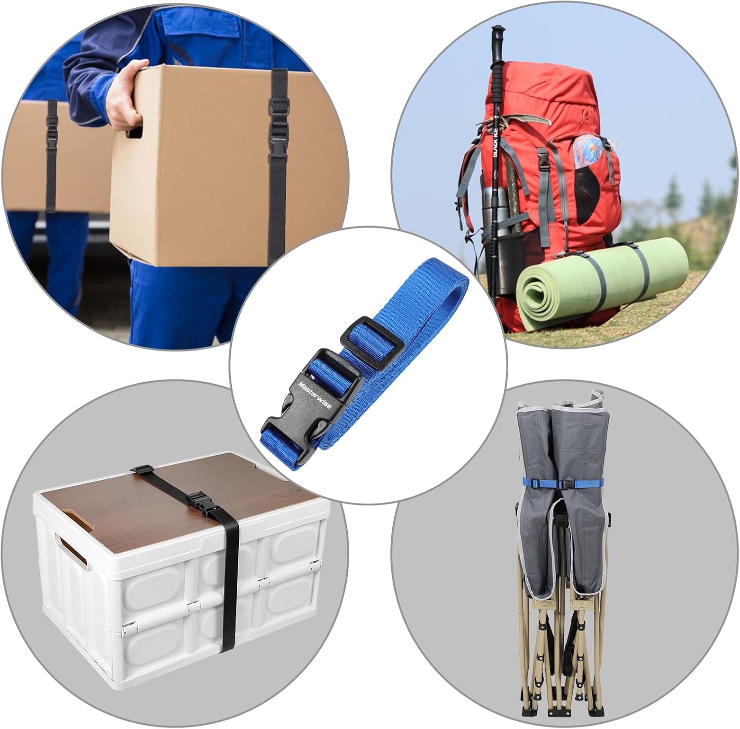 Buckle with Clips, Adjustable Nylon Straps with Buckle, Packing Strap, Blue 4 Pack (6’x1)