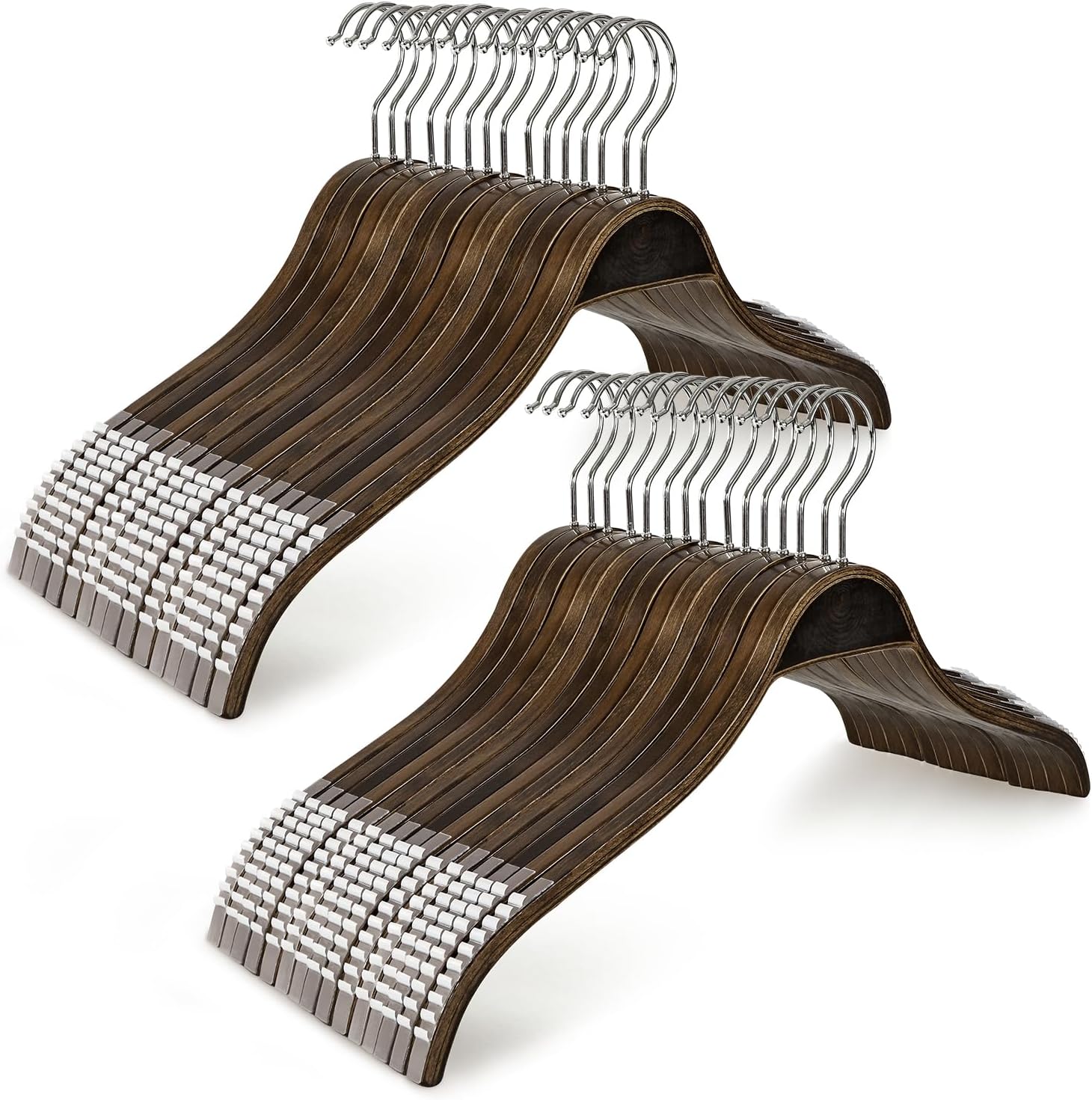TOPIA HANGER Slim Wooden Hangers with Extra Soft Non-Slip Rubber Grips, 30-Pack High-Grade Fashion Hanger No Shoulder Bump for Sweater, Camisole, Jacket, Dress, Coat (Antique)-CT15A30