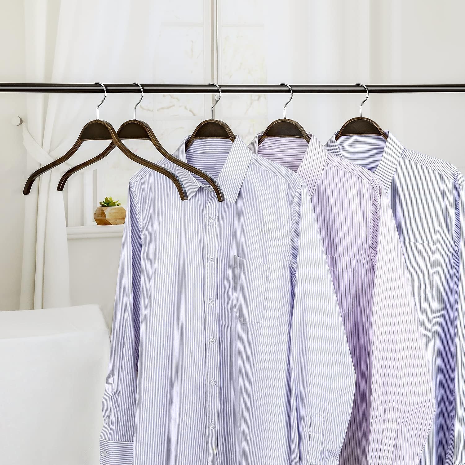 - Ergonomic Design: The shoulder contours of the hanger perfectly adapted to the curve of the human body, keeping your clothes in nice shape and wrinkle free; No more awkward shoulder bumps on sweaters or coat