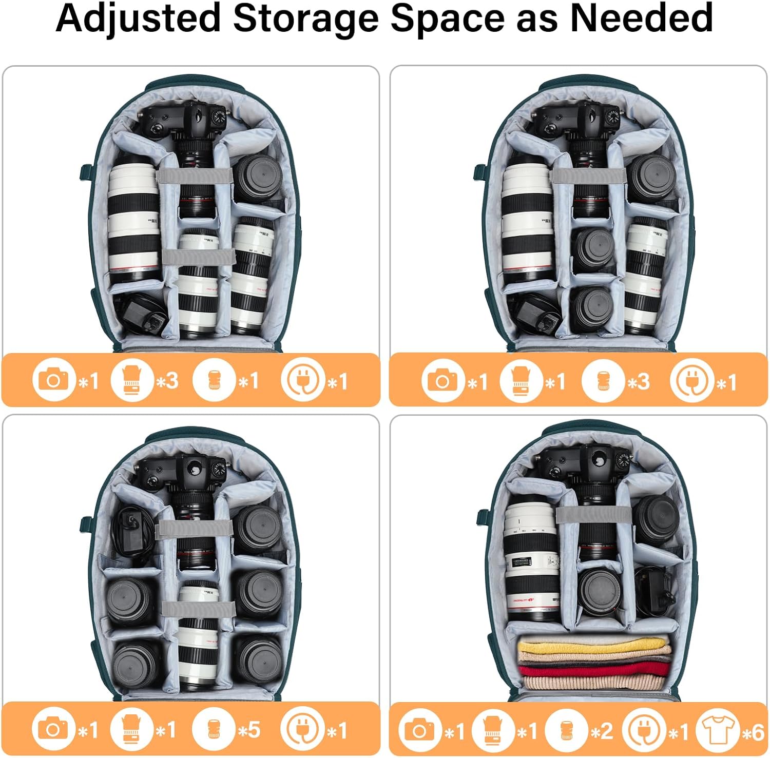 - Full open design. 2 accessory pockets on the back face can store cables, sd cards, powerbank and other small items. Tripod/monopod holder is featured with 1 secure strap on one bag side. 1 pocket on another side can store umbrella or water bottle(up to maximum 2.5 diameter). 1 anti-theft pocket is designed on the back for your wallet, cellphone and precious items.
