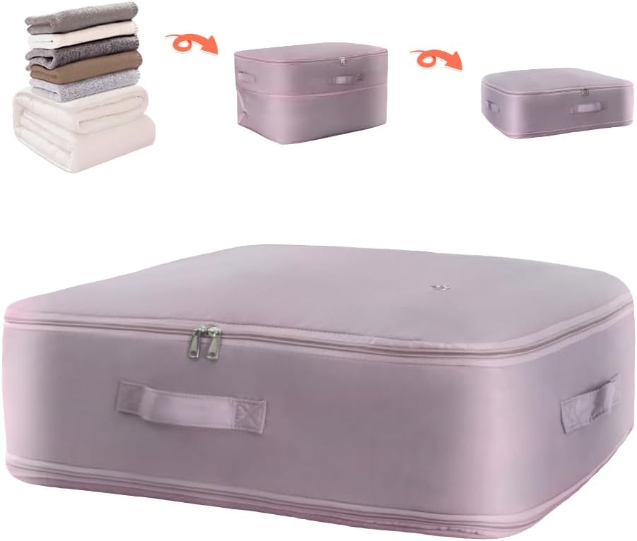 Ultra Space Saving Self Compression Storage Bags with Zipper, (pink) -Compression Organize for Bedding, Comforter Storage Bag for Blankets Duvet Quilts Pillows