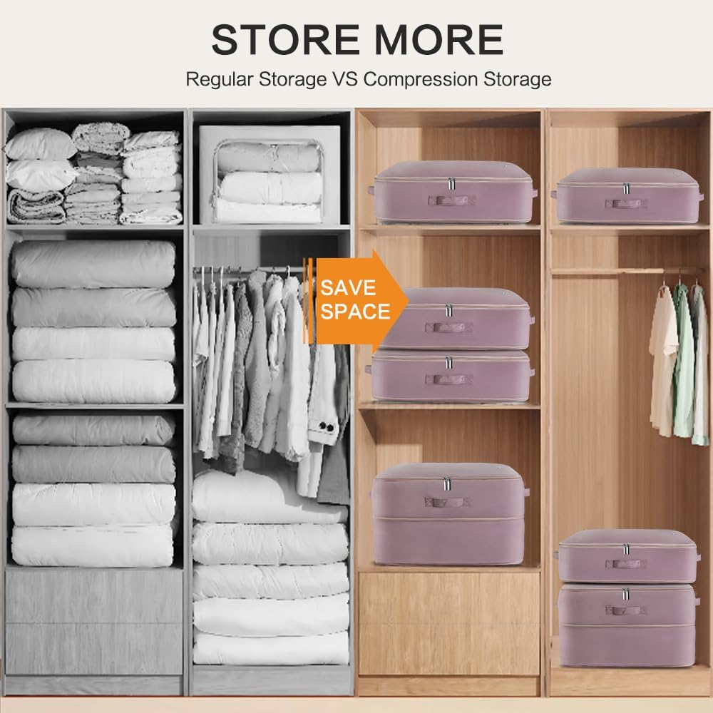 - NEW COMPRESSION ORGANIZER BAG: Our bedding storage bag is a storage bag will not be over-compressed, over-compression will make the clothing unsightly or deformed; it has two exhaust holes, exhaust the air after the zipper can be zipped to achieve the effect of space-saving