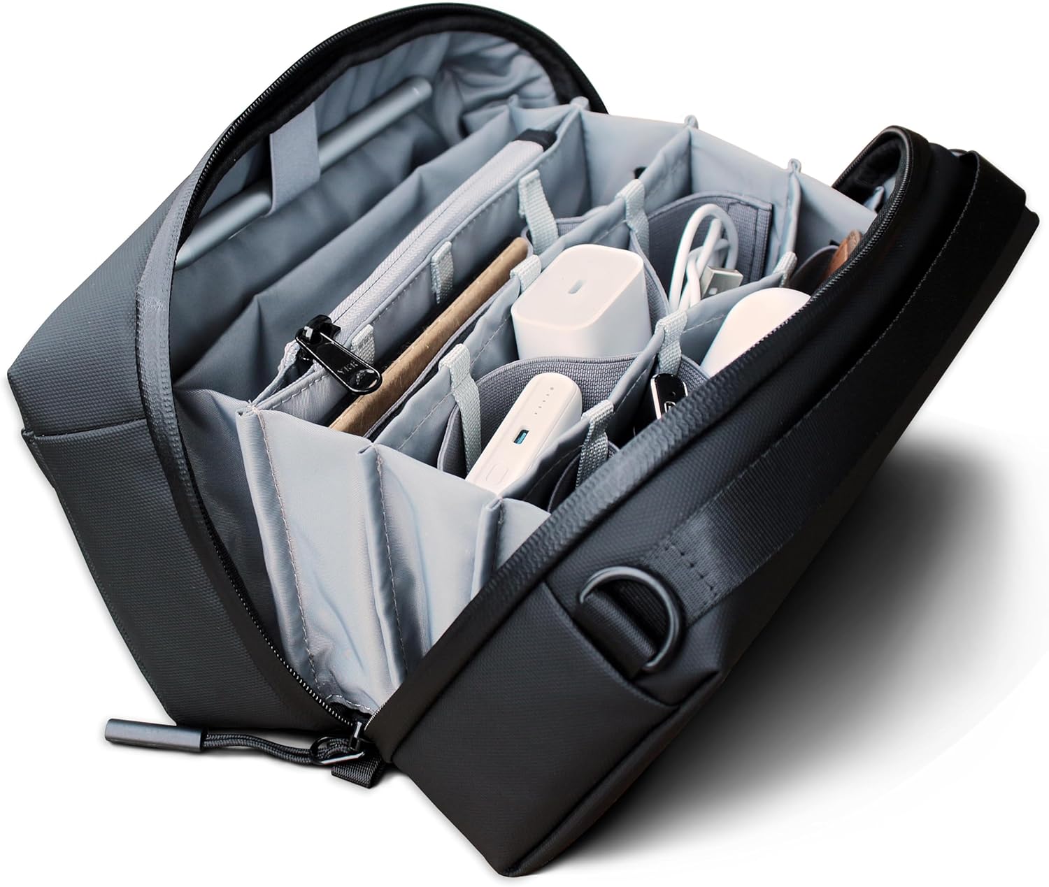 - Organized Storage: Alex T1 backpack organizer pouch features unique "Wavy divider system" that makes the inner space of the bag totally customizable, keeping all EDC tech accessories neat, compact, and easily accessible. It can holds your MacBook chargers, cables, mouse, USB, USB-C hub, SSD, power bank, hard drive, AirPods, and more. Removable panel for SD card, USB dongle, smart phone, earpods, wallet, keys, even a iPad mini.