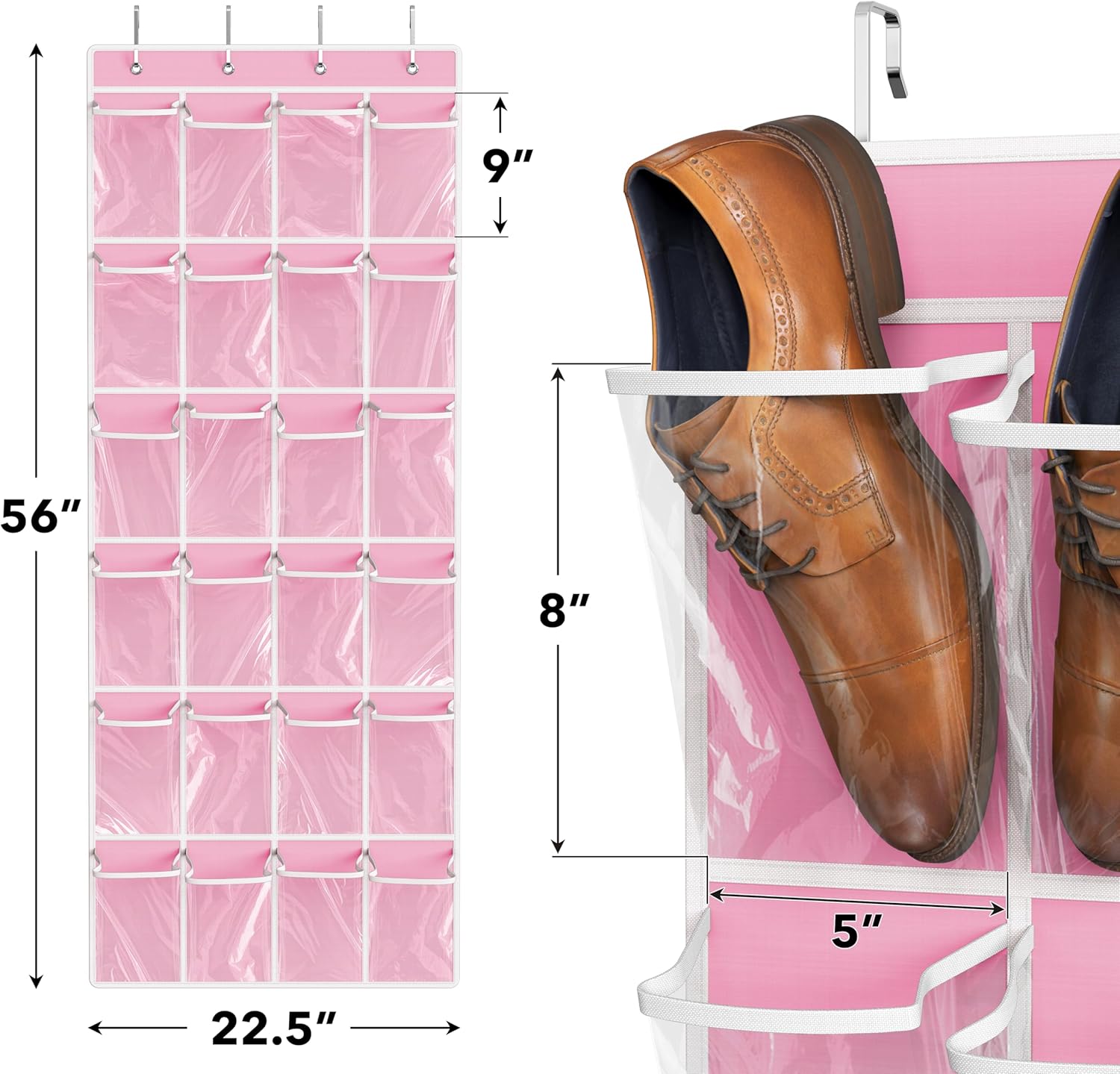 Simple Houseware 24 Pockets Large Clear Pockets Over The Door Hanging Shoe Organizer, Pink (56" x 22.5")