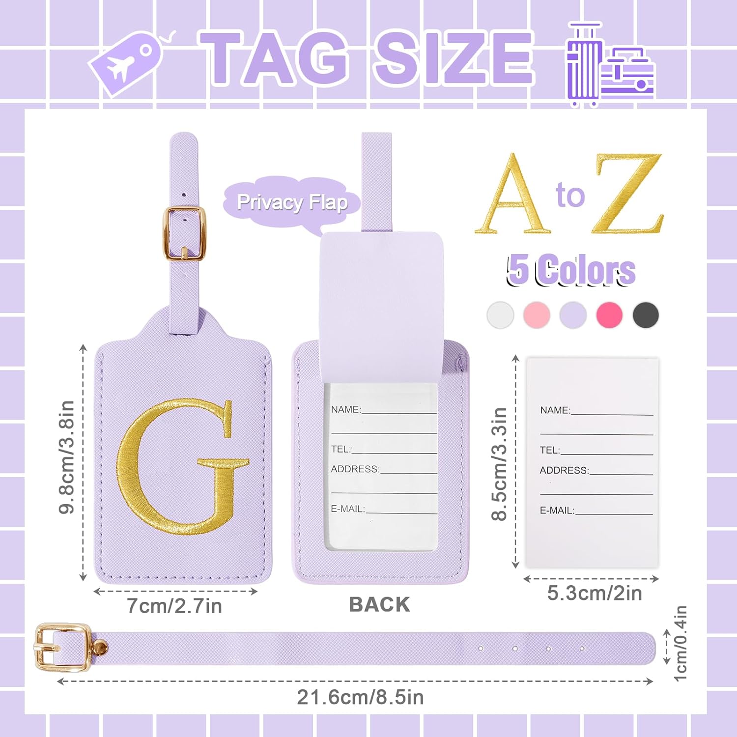 Personalized Initial Luggage Tags for Suitcase, Purple Leather Cute Luggage Tags with Privacy Cover Name Card, Embroidered Custom Monogrammed Luggage Tag Travel Backpack Tags Gifts for Women Kids(G)