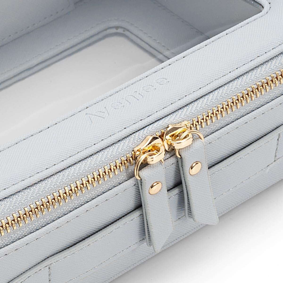 - ❤【PREMIUM PU LEATHER】Unlike other flimsy and collapsible pvc bags, our cosmetic pouch which made of premium saffiano PU leather and thick vinyl can keep a good structure. Together with the beautiful stitches and whisper-quiet metal zippers, this make up bag is durable for long-lasting use.