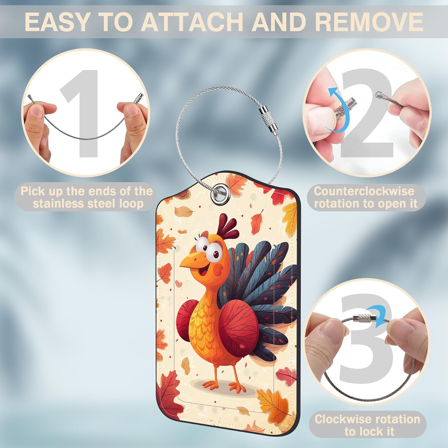 2 Pcs Thanksgiving Turkey Luggage Tags for Suitcases Autumn Fallen Leaves PU Leather Baggage Tags Name ID Label with Privacy Cover and Stainless Steel Loop for Men Women Travel Bag Suitcase