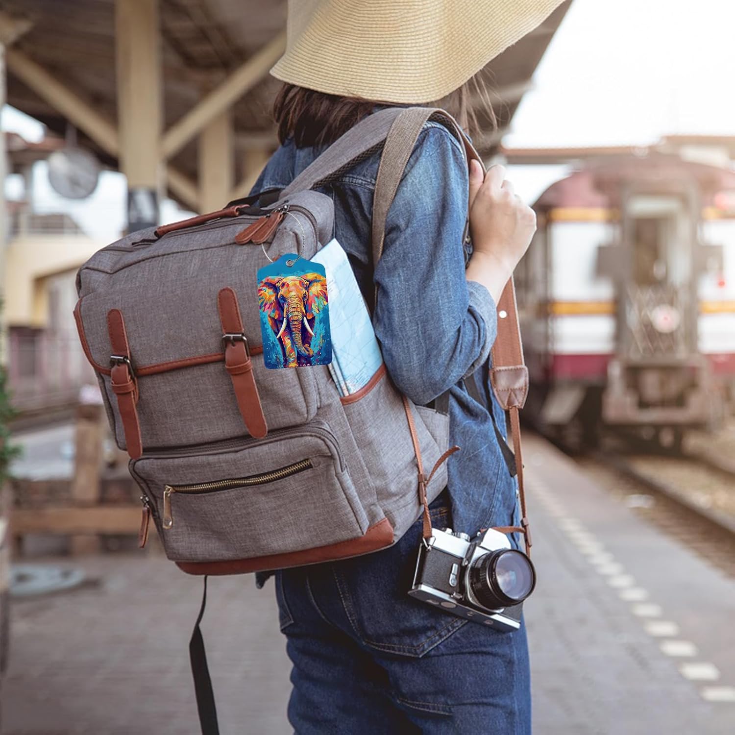 Colorful Elephant 2-Pack Luggage Tags for Suitcases,Leather Baggage Tag with Loop, Tags Private Name ID Labels for Women Girl Men Boys Travel Baggage Suitcase