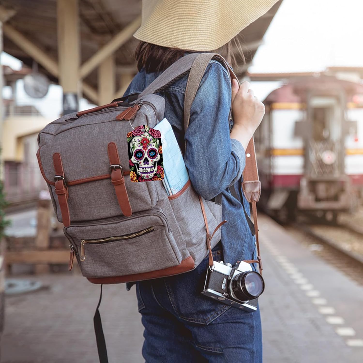 Skull Flower Diamond Art Luggage Tags for Suitcases,2 Pack Luggage Tag, Leather Stainless Steel Loop Label Tag for Women Girl Travel Bag Suitcase