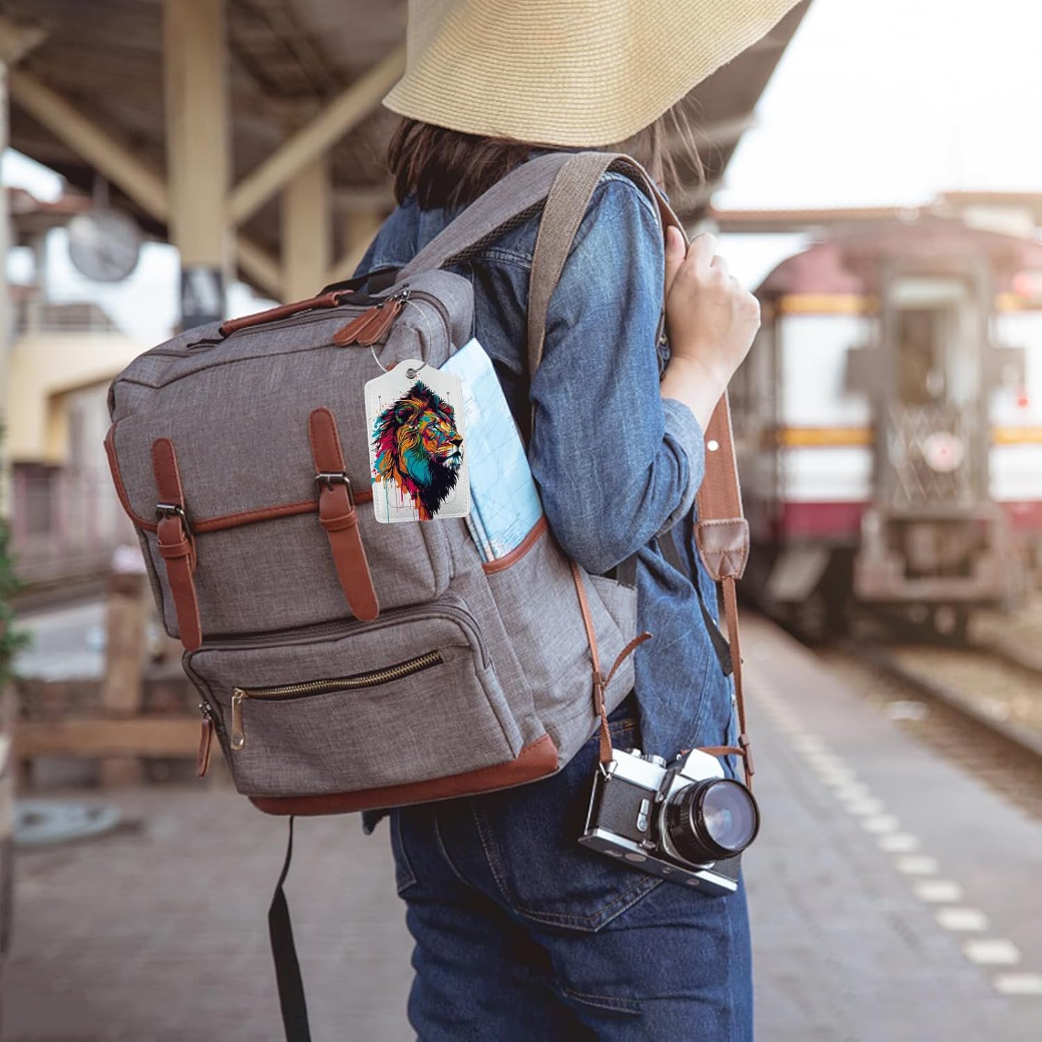 Colorful Lion in Pop Luggage Tags for Suitcases,Leather Bag Tags for Backpacks Handbag Instrument with Name ID Label Travel Essentials Baggage Tags 2 Pack
