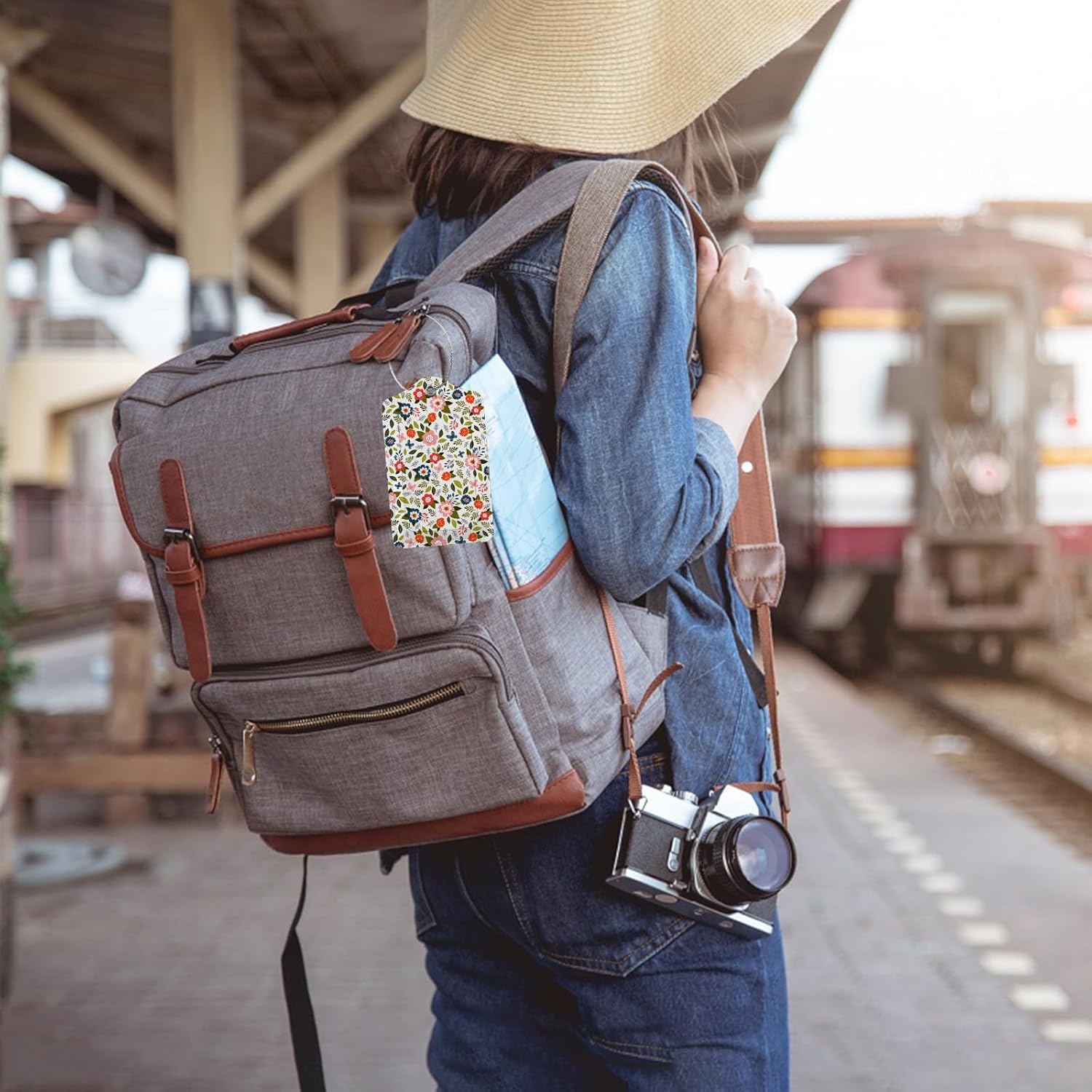 Blooming Flower Luggage Tags for Suitcases,2 Pack Luggage Tag, Leather Stainless Steel Loop Label Tag for Women Girl Travel Bag Suitcase