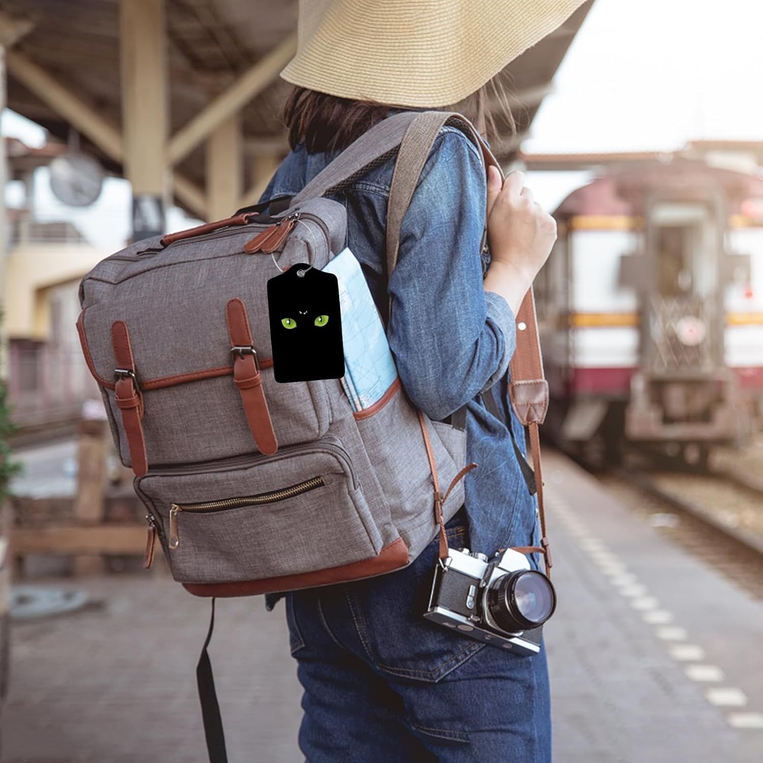 Black Cat Eyes 2 Pack Luggage Tag for Suitcase, Cute Unique Leather Bag Tags Identifiers Privacy Cover ID Label with Steel Loop for Women Men Kids Girls Travel