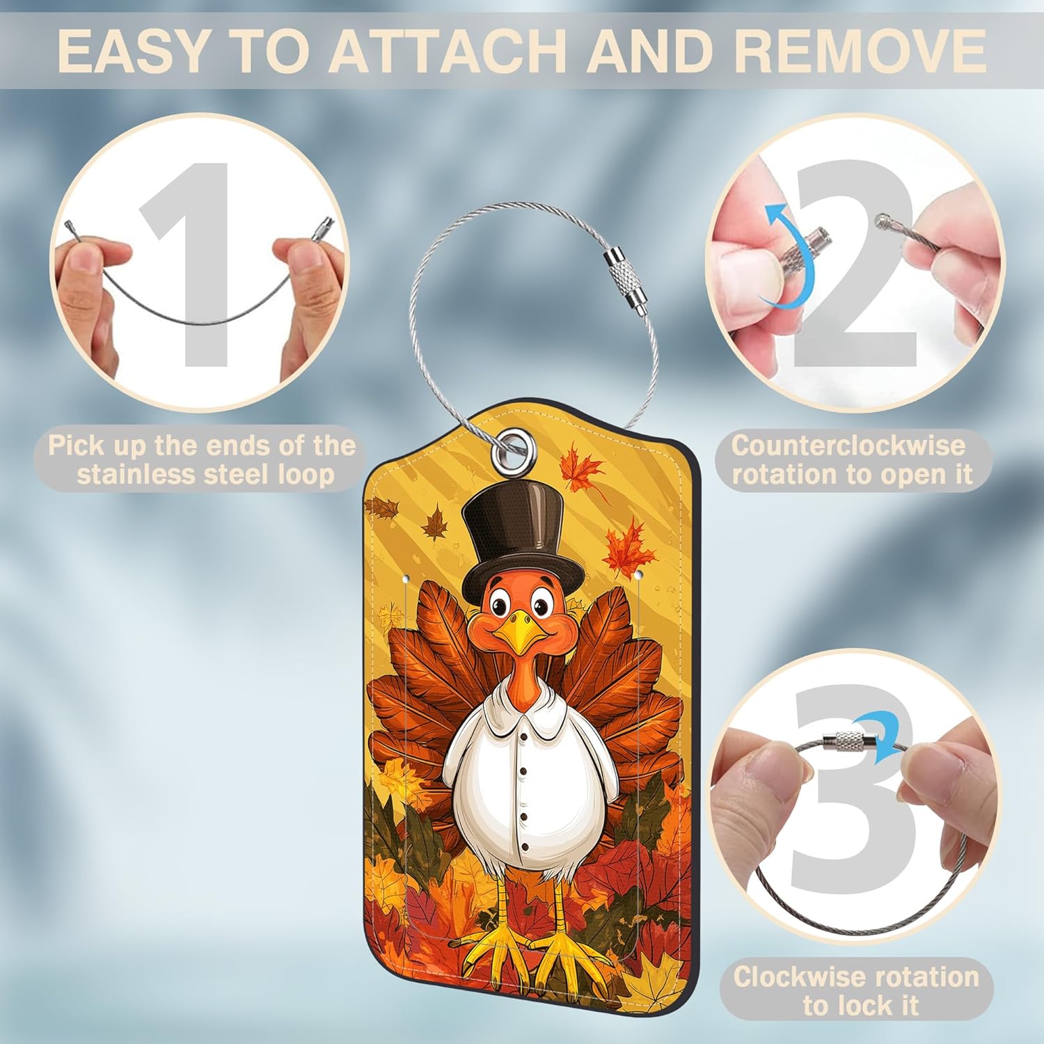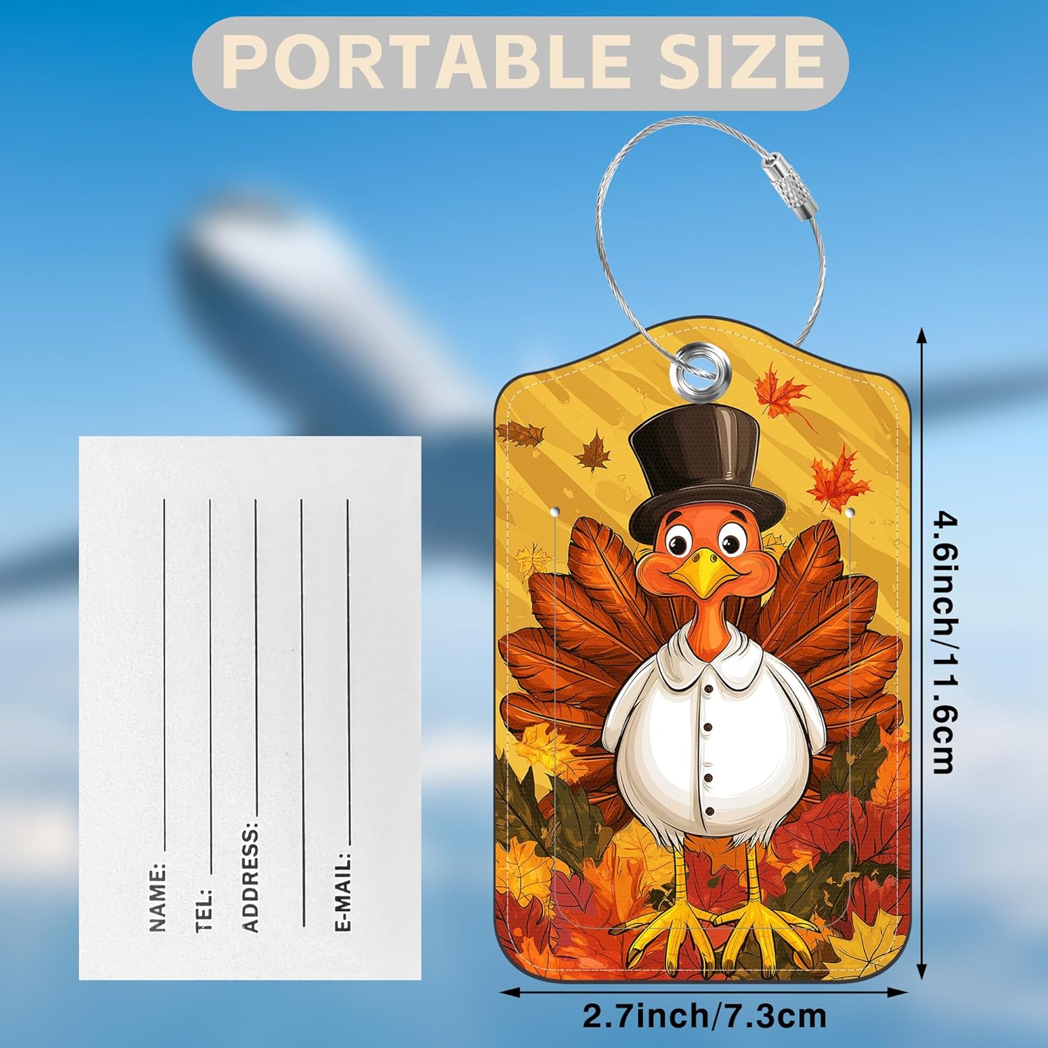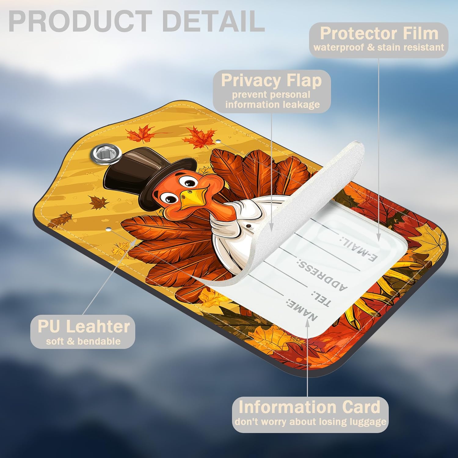 2 Pcs Autumn Turkey Luggage Tags for Suitcases PU Leather Baggage Tags Name ID Label with Privacy Cover and Stainless Steel Loop for Men Women Travel Bag Suitcase