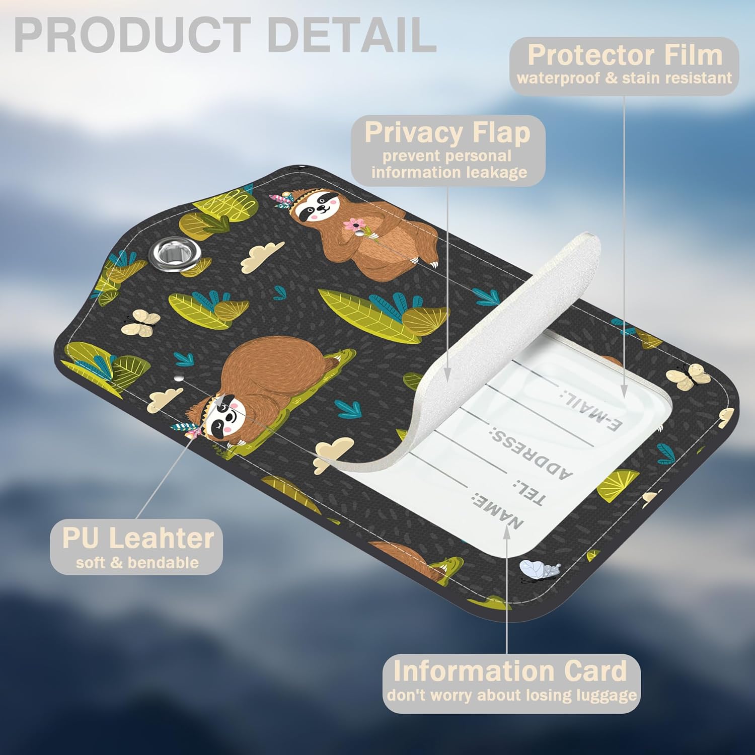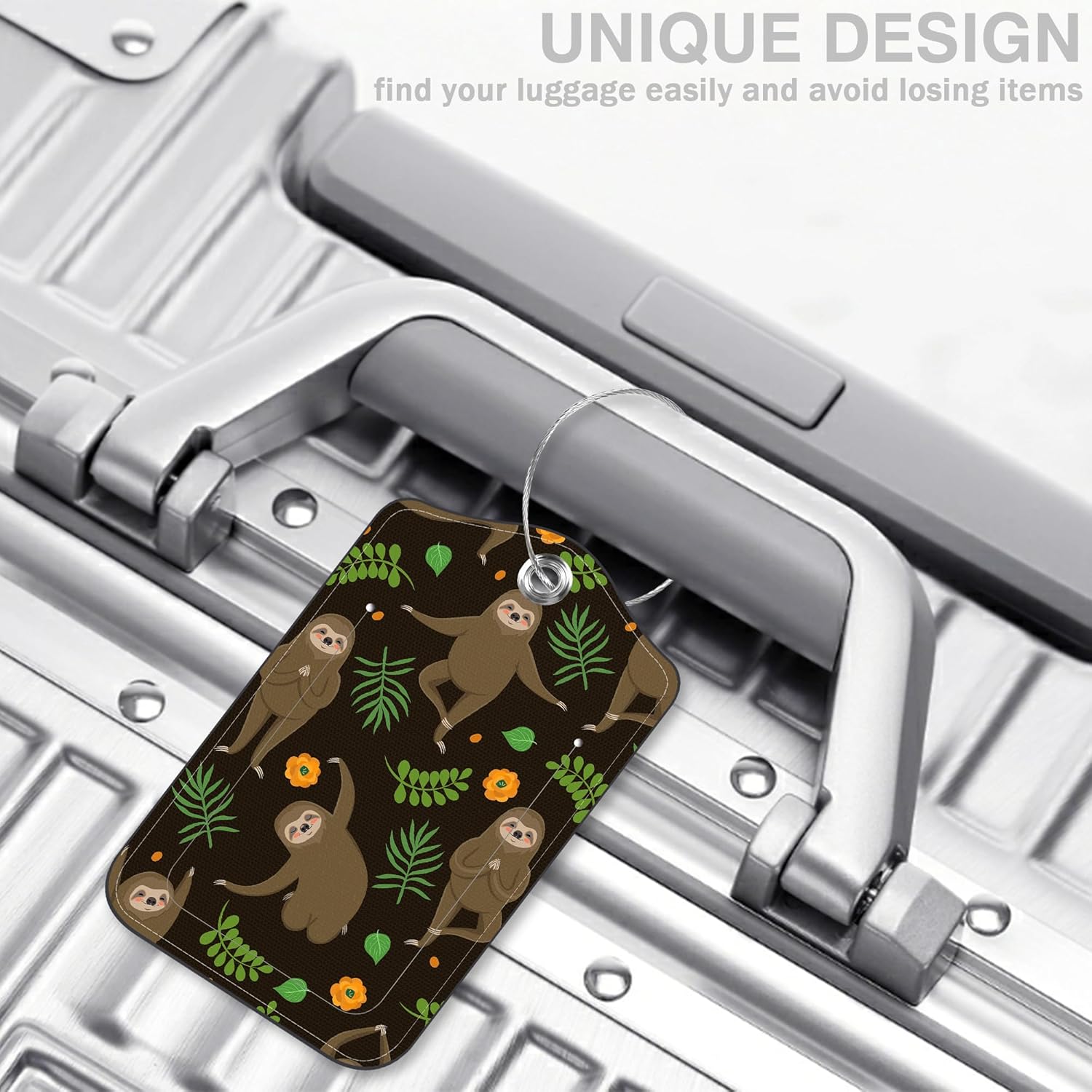 2 Pack Yoga Luggage Tags for Suitcases Funny Sloths Leather Luggage Tags Privacy Cover ID Label with Stainless Steel Loop and Address Card for Women Men Travel Bag Backpack