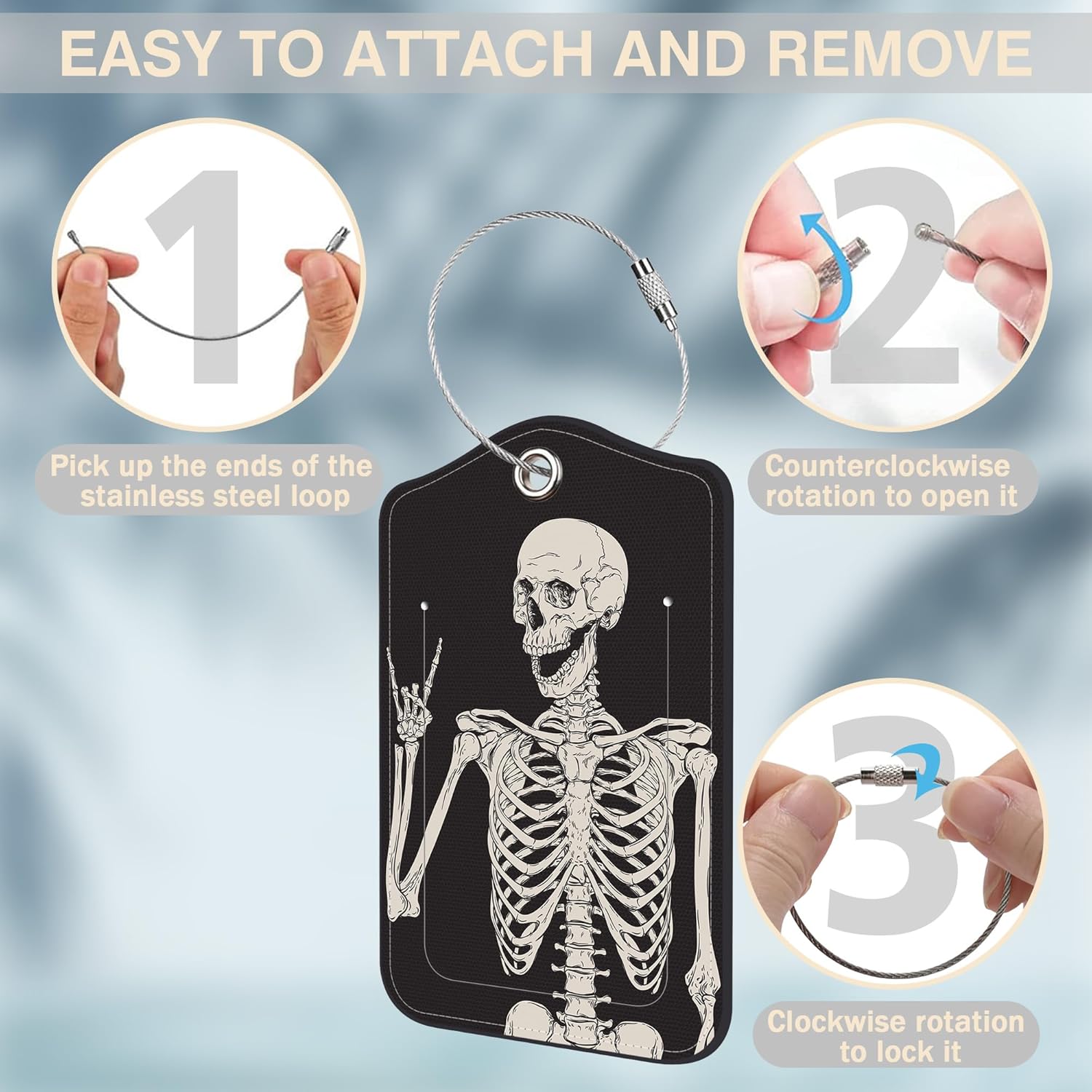 - EASY INSTALLATION: The leather suitcase tag has a stainless steel loop, which is easy to install and remove. It can firmly connect your luggage and tag, and it is not easy to fall off and lose, more convenient and practical