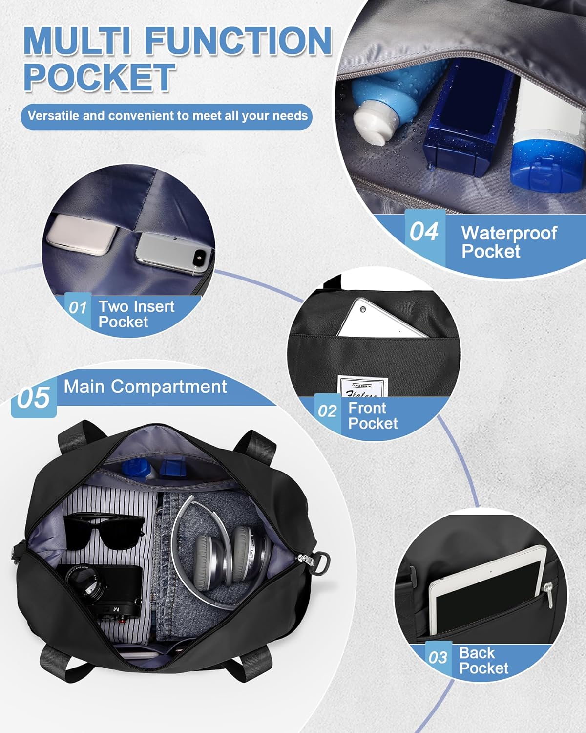 • 【Dry Wet Separated Tote Gym Bag】High-density waterproof wet pocket in the main compartment,which can help you to separate dry items and wet items,if you have wet clothes or towel,you can put it in this crossbody bag.