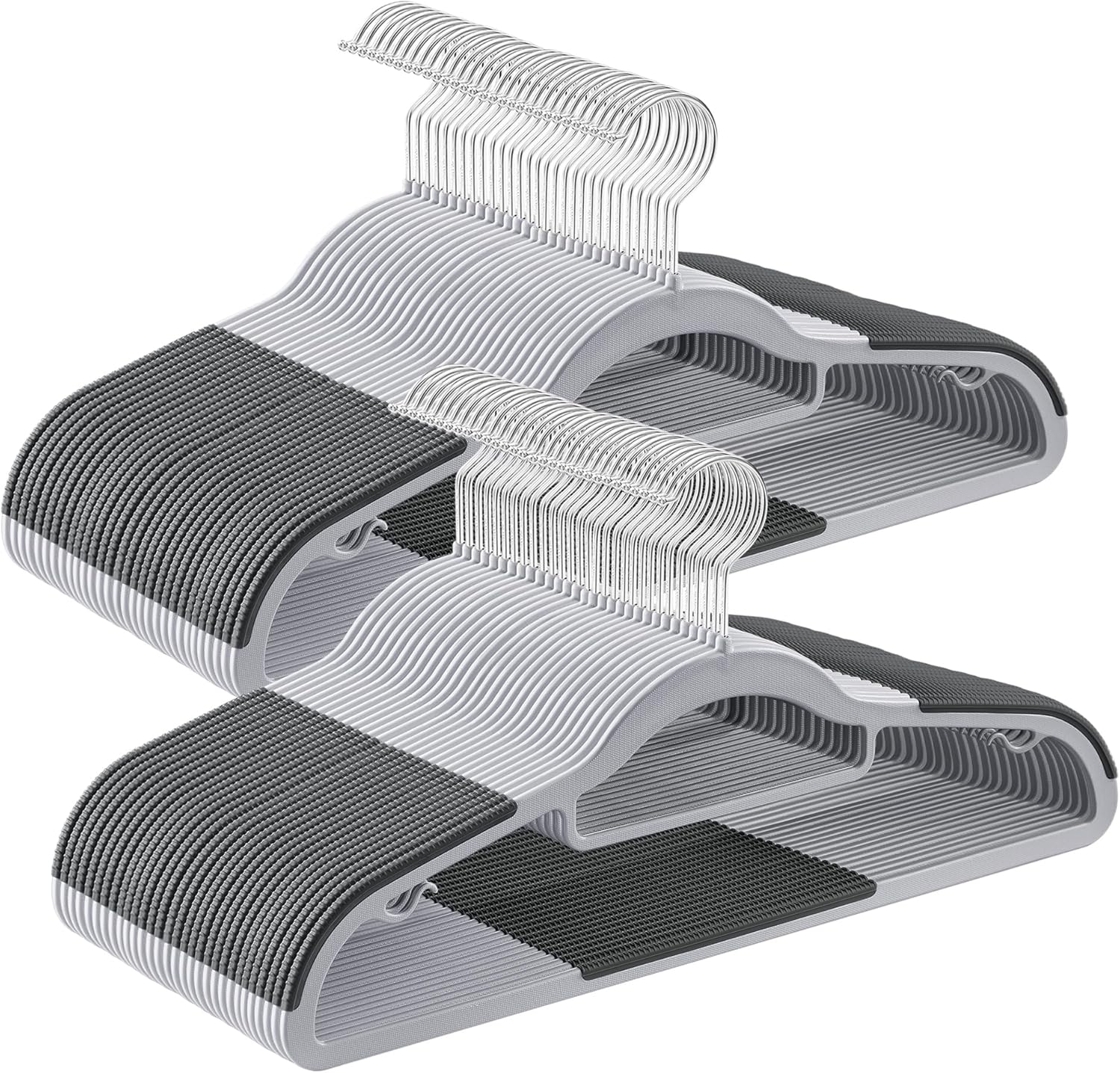 SONGMICS Pack of 60 Coat Hangers, Space-Saving Plastic Clothes Hangers, Non-Slip, 0.2 Inches Slim, 16.5 Inches Wide, 360° Swivel Silver Hook, Light and Dark Gray UCRP0020G01