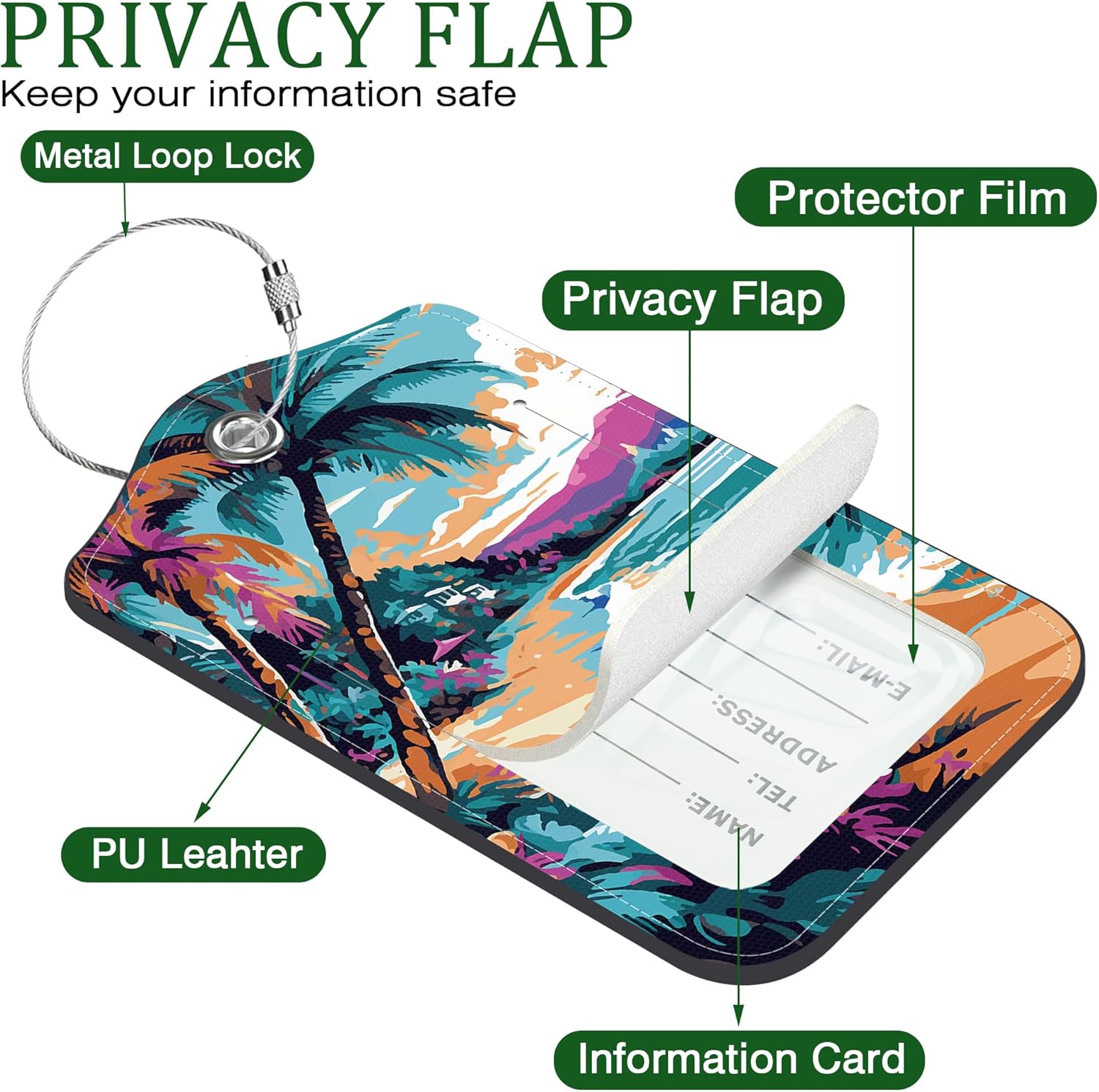 2 PCS Leather Luggage Tags for Suitcase Sea and Beach Coastal Landscape Travel Luggage Tag with Privacy Flap Name ID Label and Metal Loop for Travel Bag Suitcase