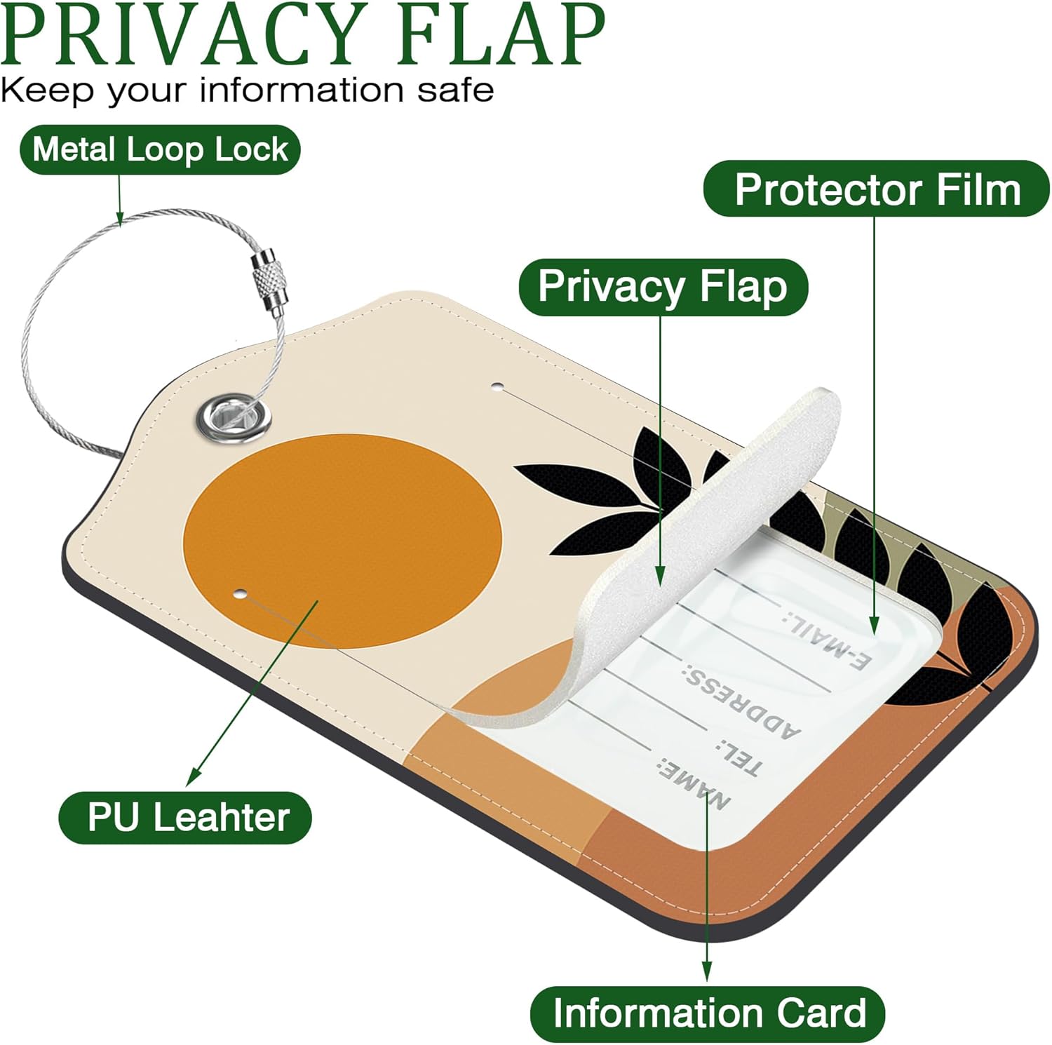 2 PCS Leather Luggage Tags for Suitcase Abstract Botanical Painting Travel Luggage Tag with Privacy Flap Name ID Label and Metal Loop for Travel Bag Suitcase