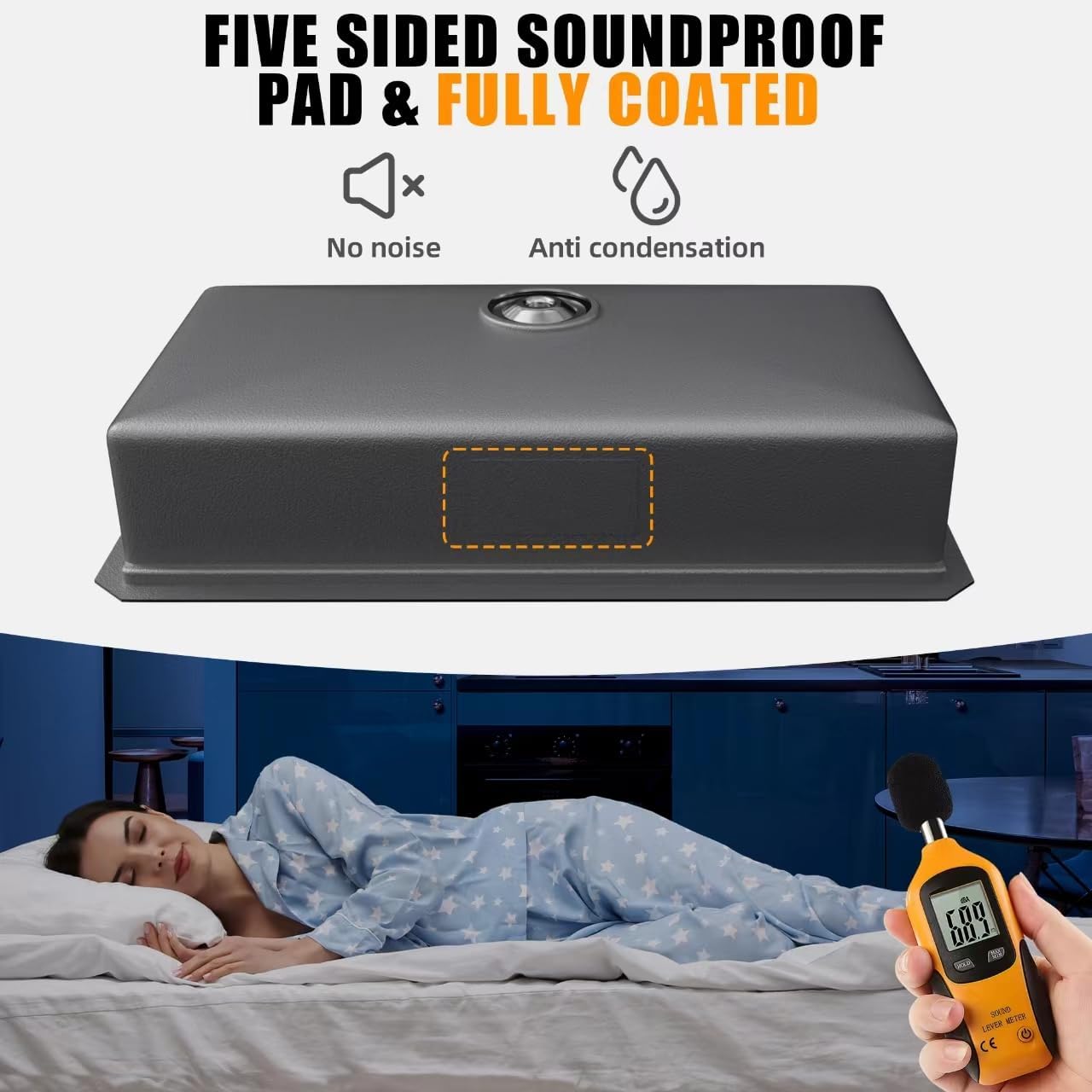 - 16 Gauge undermount kitchen sink, features noise-reducing pads to dampen water flow and thumping, and an anti-condensation coating that prevents water from pooling and keeps cabinets dry for a quiet and comfortable experience ideal for families.