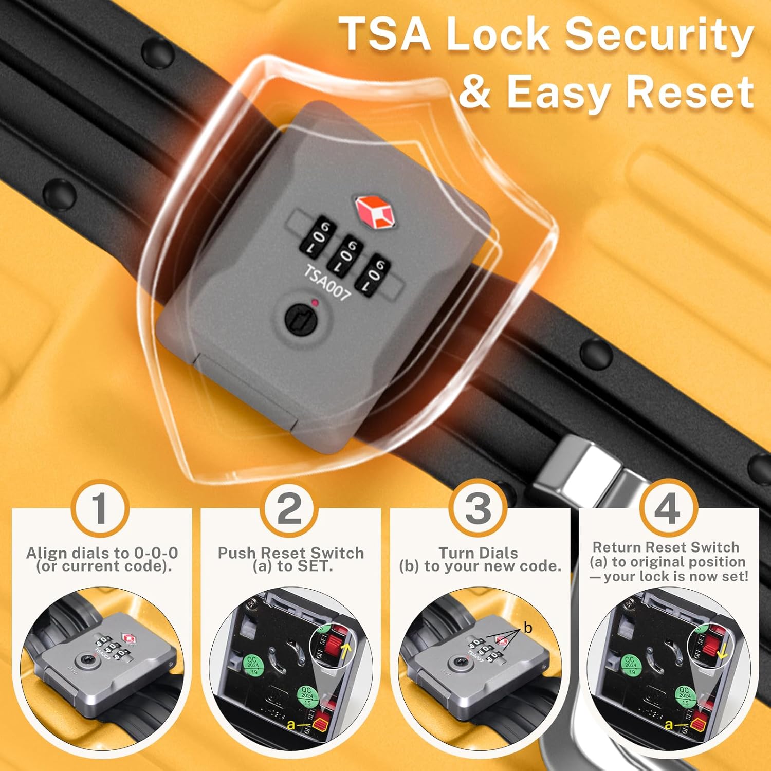 • 【TSA Lock Protects Luggage Security】Featuring a sturdy TSA lock, the suitcase enhances the security of your luggage during travel. (TSA locks do not come with keys). Its zipperless design protects belongings from unauthorized access.The zipperless design allows you to easily open the suitcase to find what you need in noisy environments without the need to go around the case a whole circle like a zip suitcase for you to open it.