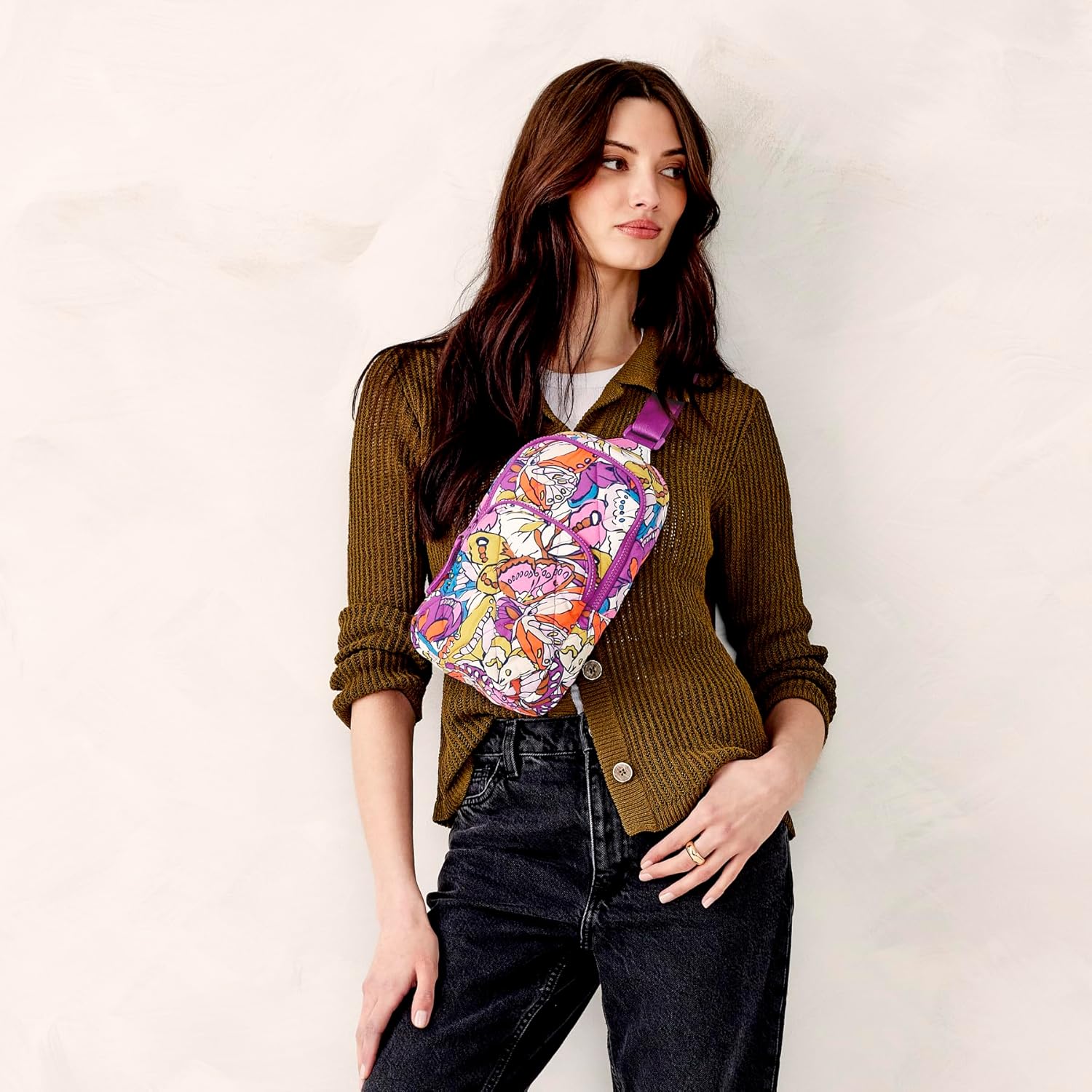 Vera Bradley Women's Lorman Sling Backpack-Featherweight Bag, Flutter, One Size